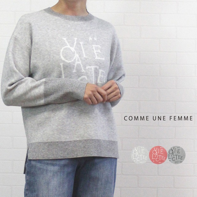 ニット ロゴ ジャガード プルオーバー 長袖 秋 冬 春 洗濯可 コムアンファム Comme une Femme 40代 50代 60代