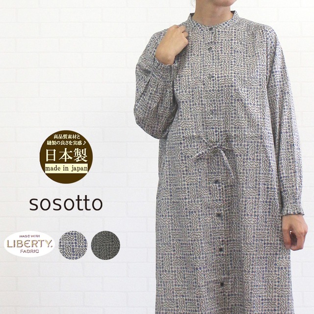 ソソット sosotto ワンピース LIBERTY PRINT 前開き ウエストドロスト おしゃれ 綺麗 清楚 40代 50代 60代
