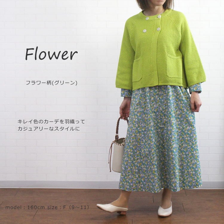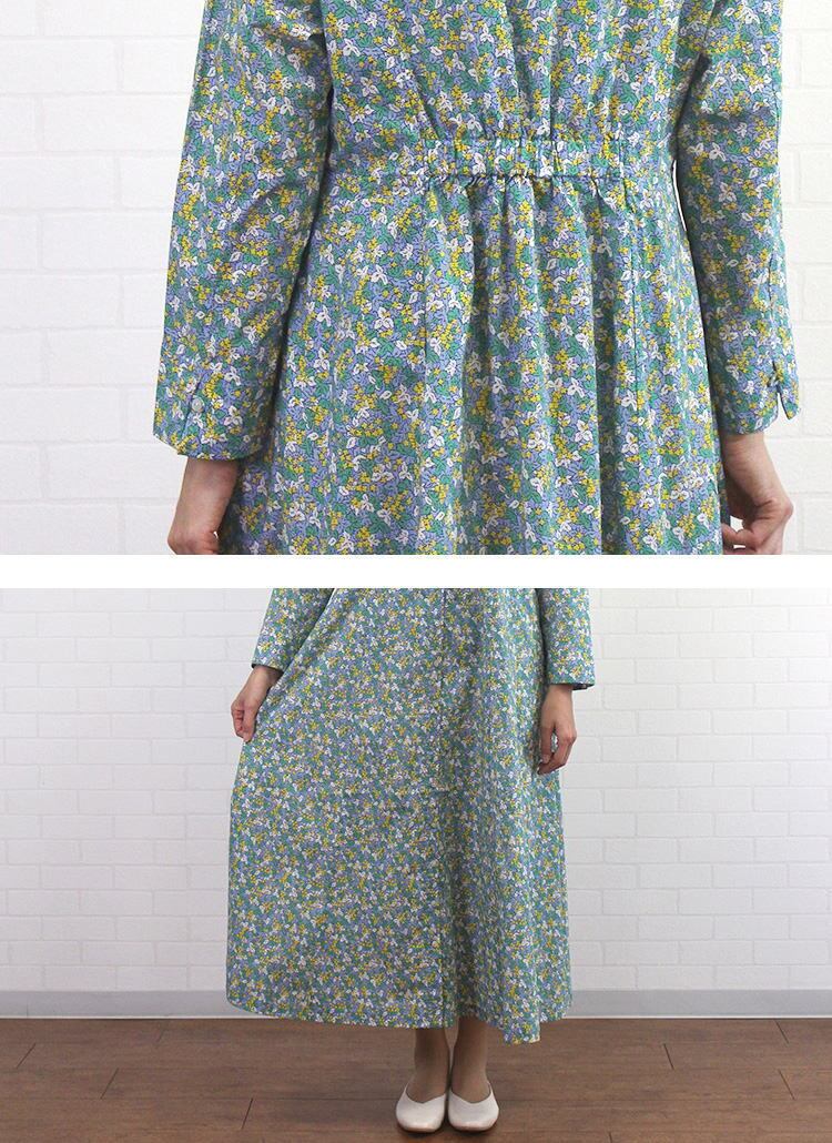 ポンデシャロン PONT DE CHALONS 22480418 ワンピース 前あき 花柄 ドット 長袖 羽織り レディース 女性 春 秋 綿100% 可愛い フェミニン カジュアル ブラック グリーン 洗濯可 F 9号 11号 40代 50代 60代 店舗 通販 オンラインショップ