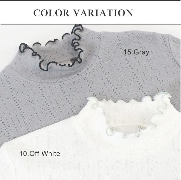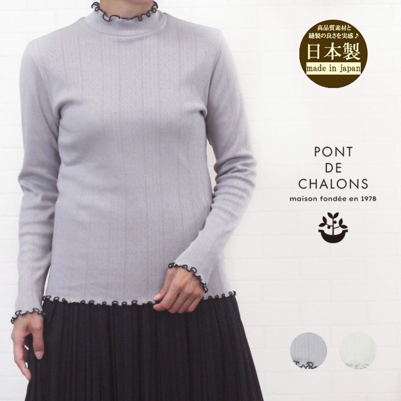 トップス カットソー ハイネック パターンメッシュ メローフリル 綿100% 日本製 洗濯可 大人可愛い 着やすい ポンデシャロン PONT DE CHALONS 40代 50代 60代