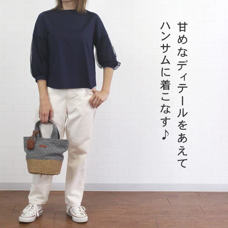 トレンドのチュール素材を袖の部分に重ねてふんわりと華やいだComme une Femmeのデザインカットソーのご紹介です。後ろ裾はスリットになったデザインで後ろ姿もすっきり!透けにくい綿素材を使用し夏でも日よけや冷房除けになり、一枚で安心しておしゃれが楽しめる大人世代に嬉しいプルオーバーです♪
