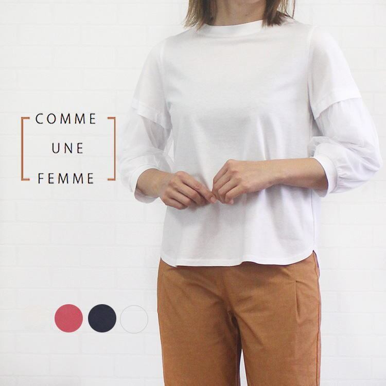 コムアンファム comme une femme 515303 トップス カットソー プルオーバー 綿100% 七分袖 袖チュール