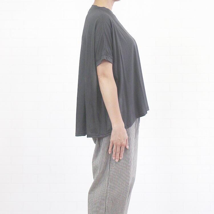 シンプルデザインでデイリーに活躍してくれる万能プルオーバーがNARU(ナル)から届きました!リヨセル(再生繊維)という、シルクのような滑らかさがある素材を使用しているので、汗ばむ季節でもさらりと着用できるのが魅力。ゆったりとしたボックスシルエットに裾は前後で差をつけ、動きに合わせて軽やかに揺れるシルエットがコーディネートに抜け感をプラスしてくれます。自然なツヤと美しいドレープで上品に着て頂ける、大人に嬉しいワイドTシャツです♪