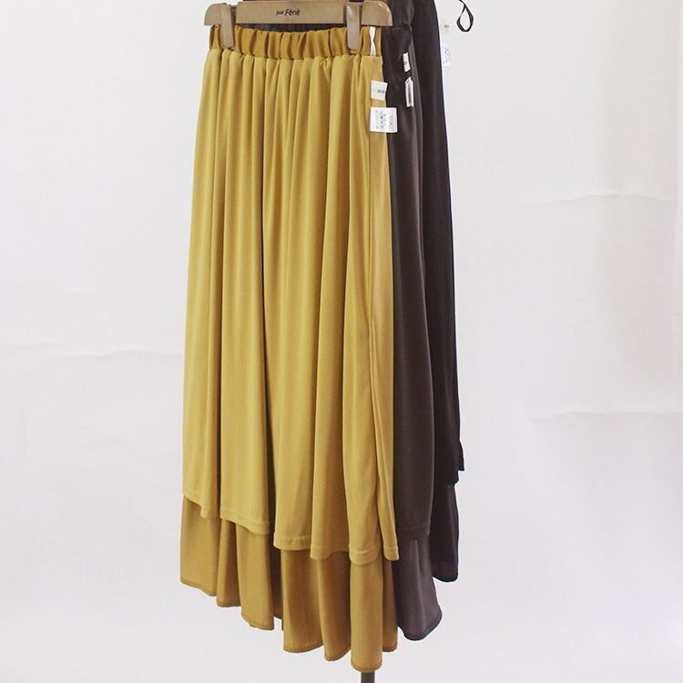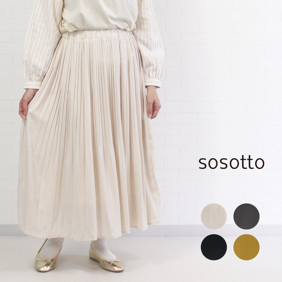 光沢感を抑えたアンティーク調のサテン地を使用したsosottoの定番 消しプリーツスカートのご紹介です。細かなプリーツの総ゴムスカートはとてもはきやすく、裾のプリーツを消すことで女性らしいシルエットと軽やかな動きのキレイ見えする人気商品です。きれいめなコーデにも、Tシャツとのカジュアルな合わせにも使えるシーズンレスな優秀スカートです♪