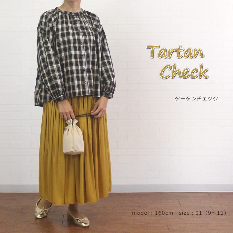 ブラウス 大人 可愛い チェック柄 無地 長袖 ソソット sosotto ノーカラー 40代 50代 60代