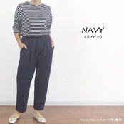 抜群のストレッチと上品な光沢感が魅力の素材で新登場!harmonie/アルモニ定番シルエット、テーパードパンツのご紹介です。タテにもヨコにも伸びるダブルストレッチ素材で穿き心地良く、ほんのりツヤ感のある素材はきちんと感もあり、オンにもオフにも大活躍♪ウエストはゴム仕様なのでストレスなくリラックスして穿いていただけ、もも周りはゆったり、裾に向かって細くなるテーパードラインなので美脚効果も抜群です。シワにもなりにくく、デイリーに着回しやすい、大人のためのリラックスパンツです。