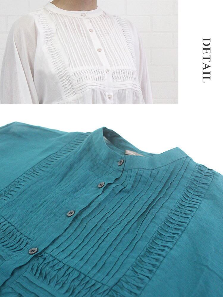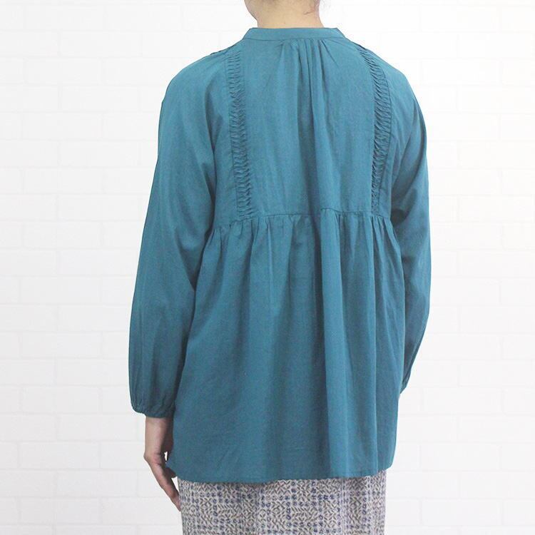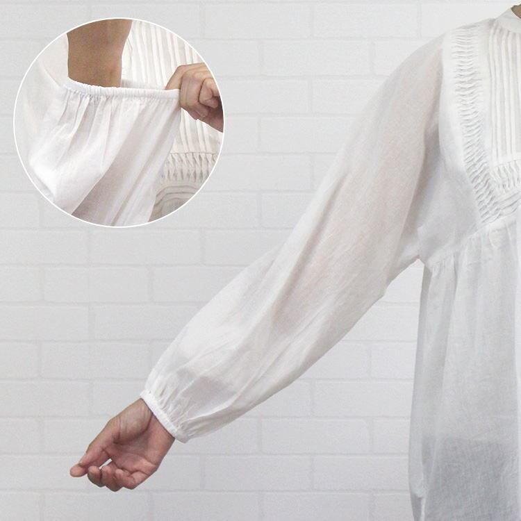 インド生産ならではの手仕事が光る繊細なピンタックが洗練された印象の上品見えするチュニックブラウスのご紹介です。贅沢にギャザーを寄せたワイドシルエットでありながら、すっきりな見え感はサラッとしたインド産のコットンを使用しているから。ヒップラインをすっぽりと隠してくれる丈感も嬉しいポイントです♪