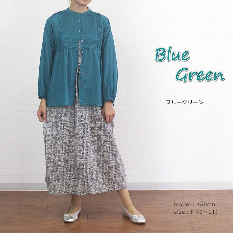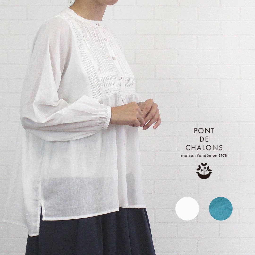 ブラウス チュニック 長め 長袖 きれいめ ウェーブピンタック 綿100% インド綿 透け感 羽織り ポンデシャロン PONT DE CHALONS 40代 50代 60代