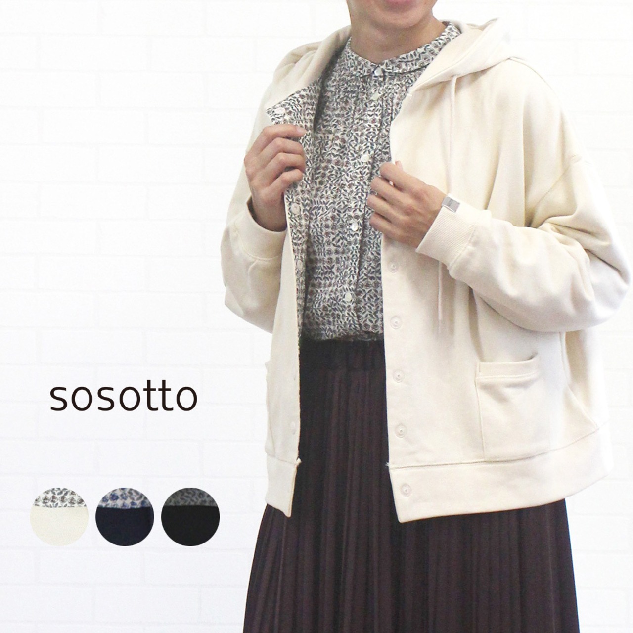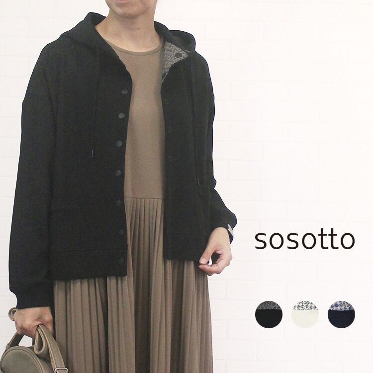 トップス ジャケット フード付き パーカー 見返しLIBERTY 裏毛 羽織り ショート丈 おしゃれ ソソット sosotto
