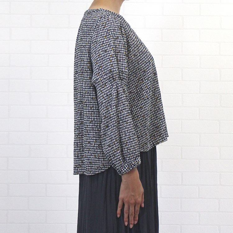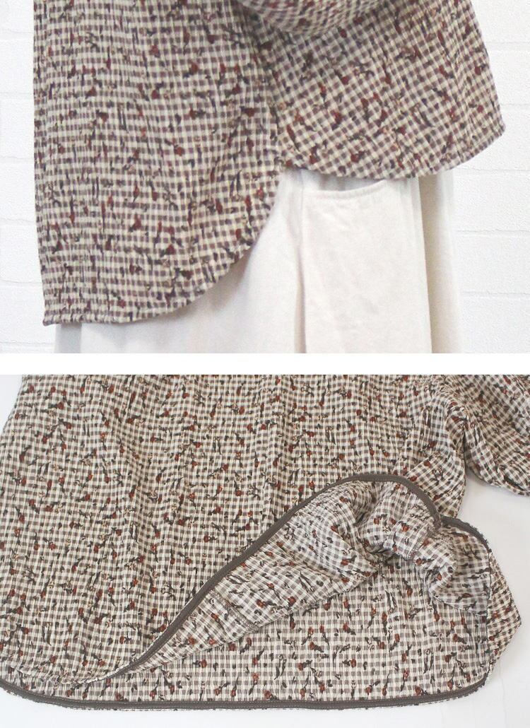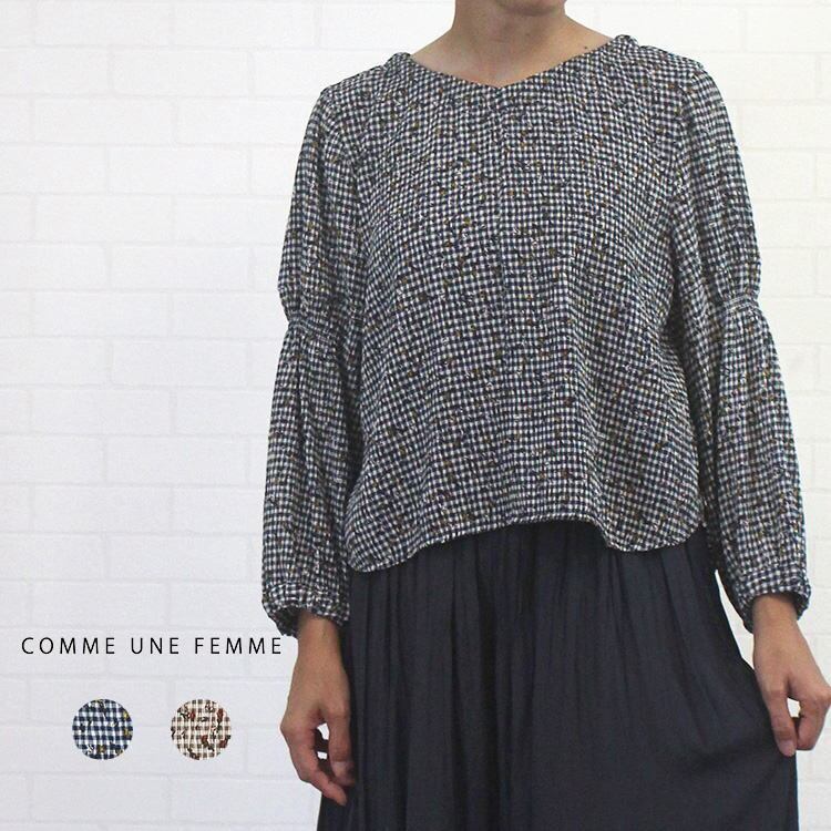 ブラウス ノーカラー キレイ セットアップ 凹凸 チェック×小花柄 大人 可愛い コムアンファム Comme une Femme 40代 50代 60代