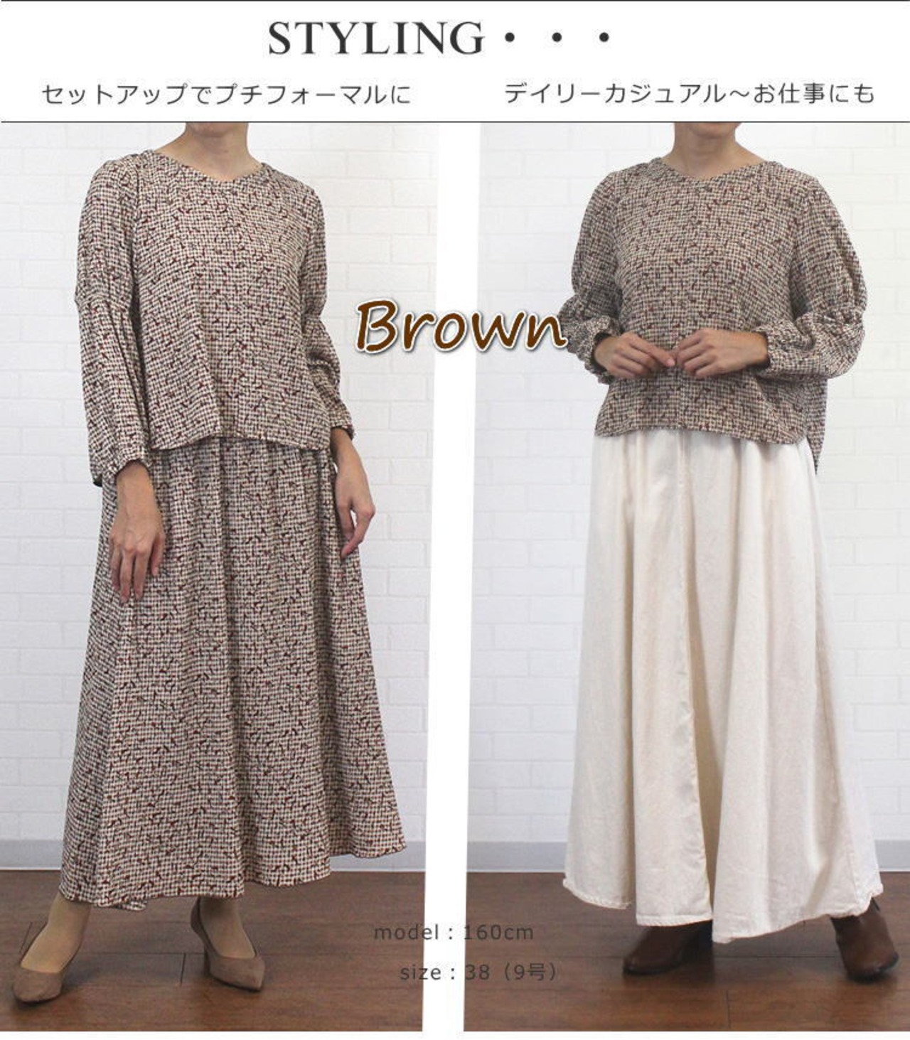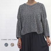 身体のラインを拾いにくい素材感が嬉しいComme une Femmeの大人可愛いプリントブラウスのご紹介です。ポコポコしたプリーツ素材のブラウスは、ギンガムチェック×小花柄が可愛らしくて合わせやすい柄いきがポイント。シャーリングでふんわりとしたお袖も◎です。同素材のスカート(555710)とのセットアップもおすすめです♪
