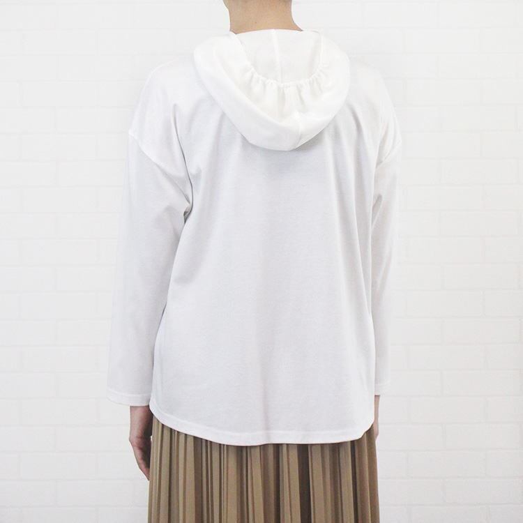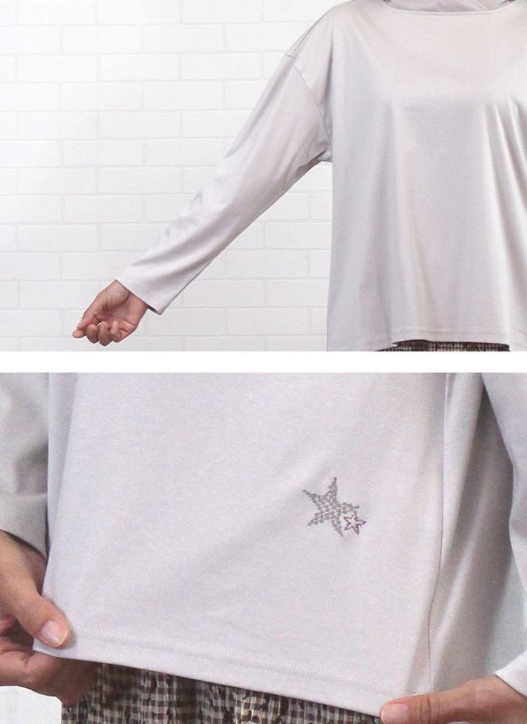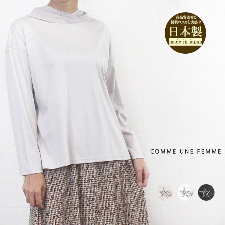 トップス フード付き ゆったり プルオーバー 星柄刺繍 異素材使い おしゃれ 日本製 コムアンファム Comme une Femme 40代 50代 60代