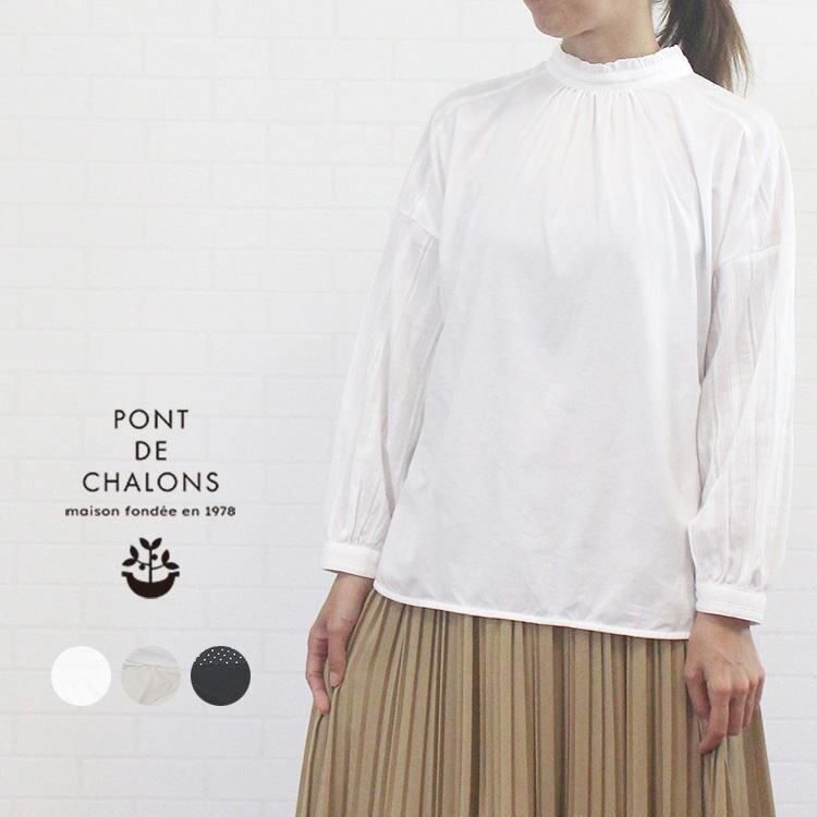 PONT DE CHALONS定番の2Wayフリルスタンドブラウスのご紹介です。ブラウス見えするこちらの商品の身頃はカットソー素材なので着心地がとても軽やかです。また、袖口や襟元などきちんと見せたい部分は布帛素材で仕上げているので、ON/OFF幅広いシーンで活躍する頼れる一枚です。前後で着られる2Way仕様なのでコーディネート次第で様々な着こなしが楽しめるのもポイントです♪