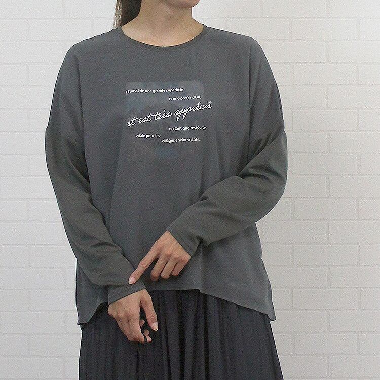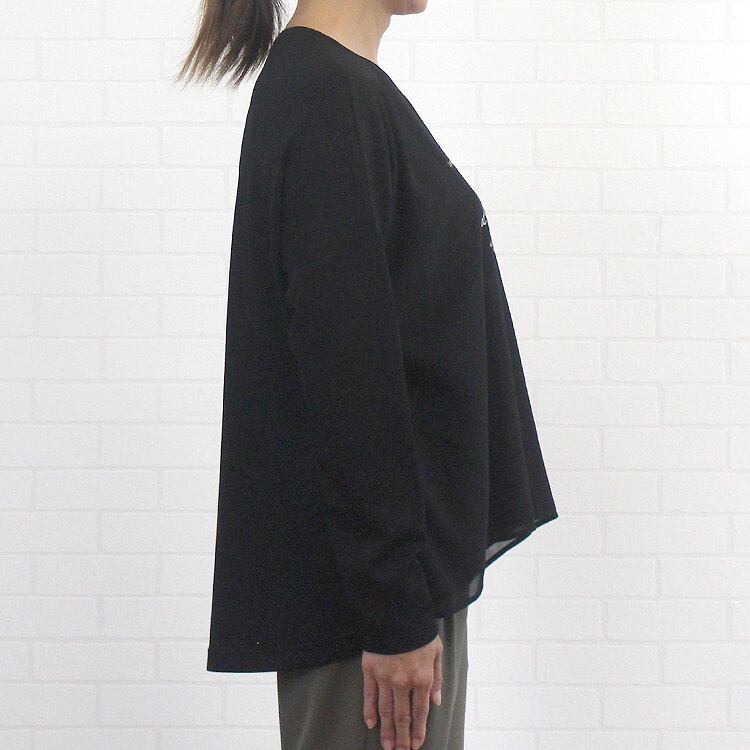 透け感のあるレイヤード風デザインがオシャレなカットソープルオーバー アトリエシックス ATELIER SIX Tシャツ ノーカラー レイヤード レディース 女性 秋 冬 春 シンプル カジュアル 店舗 通販 綿 ポリエステル F フリー 40代 50代 60代