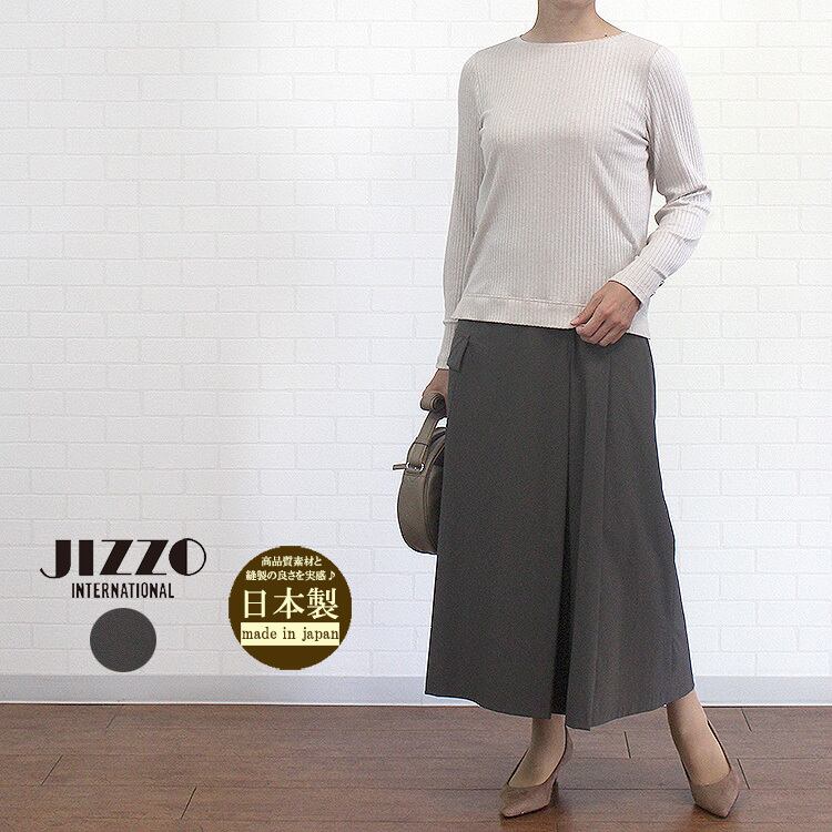 サイドポケットと片側タックがオシャレなジッツォ/JIZZOの日本製デザインスカート。ストレット抜群で穿き着やすく、上質な大人カジュアルスタイルを楽しめるスカートです。