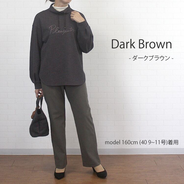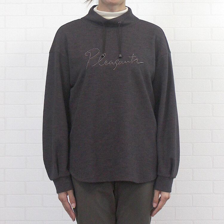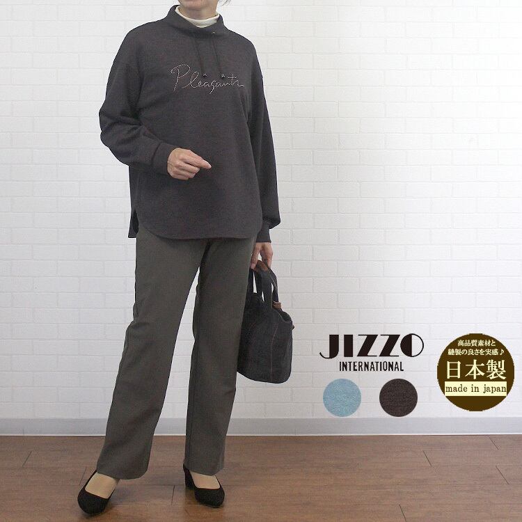 胸元のピーズ刺繍がオシャレなカットソープルオーバー ジッツォ JIZZO トップス プルオーバー カットソー スタンドカラー 長袖 刺繍 日本製 秋 冬 春 レディース 女性 シンプル カジュアル 通販 店舗 9号 40代 50代 60代