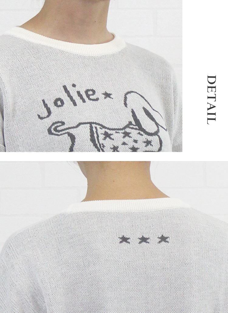 不動の人気☆犬モチーフのジャガード編みが可愛いComme une Femmeのニットプルオーバーのご紹介です。フロントにワンちゃんモチーフ、後ろ襟ぐりにはまるで首輪のスタッズのような☆☆☆を配置した遊び心あるプルオーバーです。ダブルジャガードなので裏側の糸渡もなくお洗濯も可能な、トレーナー感覚でお楽しみいただけるニットプルオーバー♪