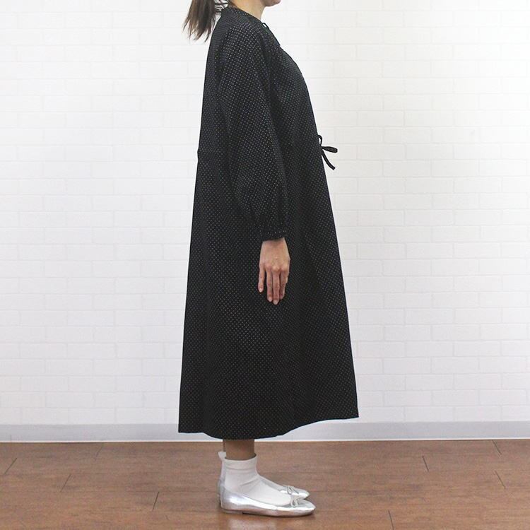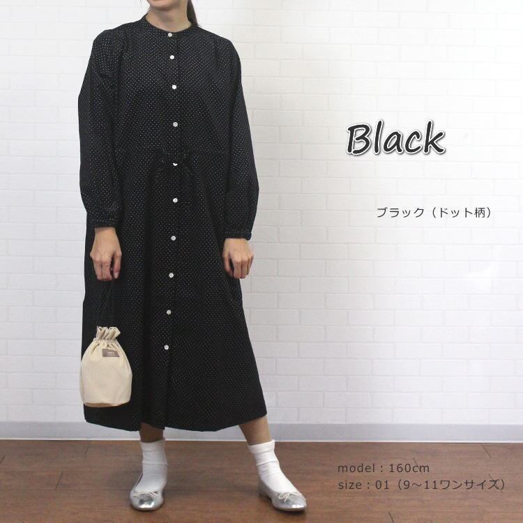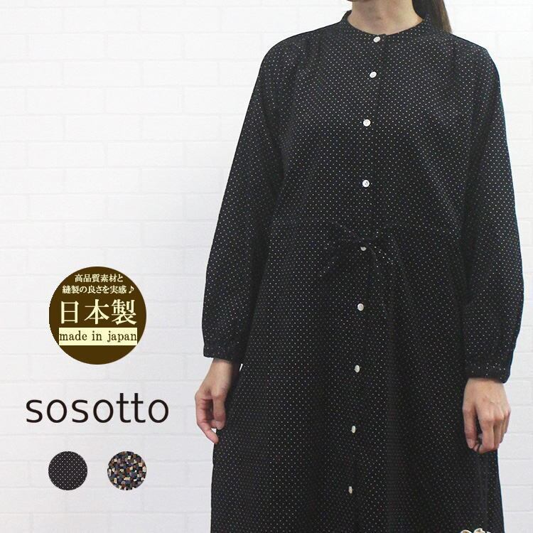 ワンピース コーデュロイ 細コール プリント バンドカラー ウエストドロスト おしゃれ 清楚 sosotto ソソット 40代 50代 60代