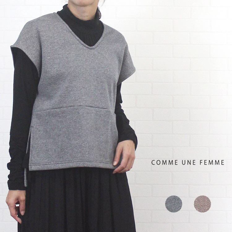ベスト カットソー ウール見え 裏ボンバー あったか ストレッチ セットアップ商品 コムアンファム Comme une Femme 40代 50代 60代