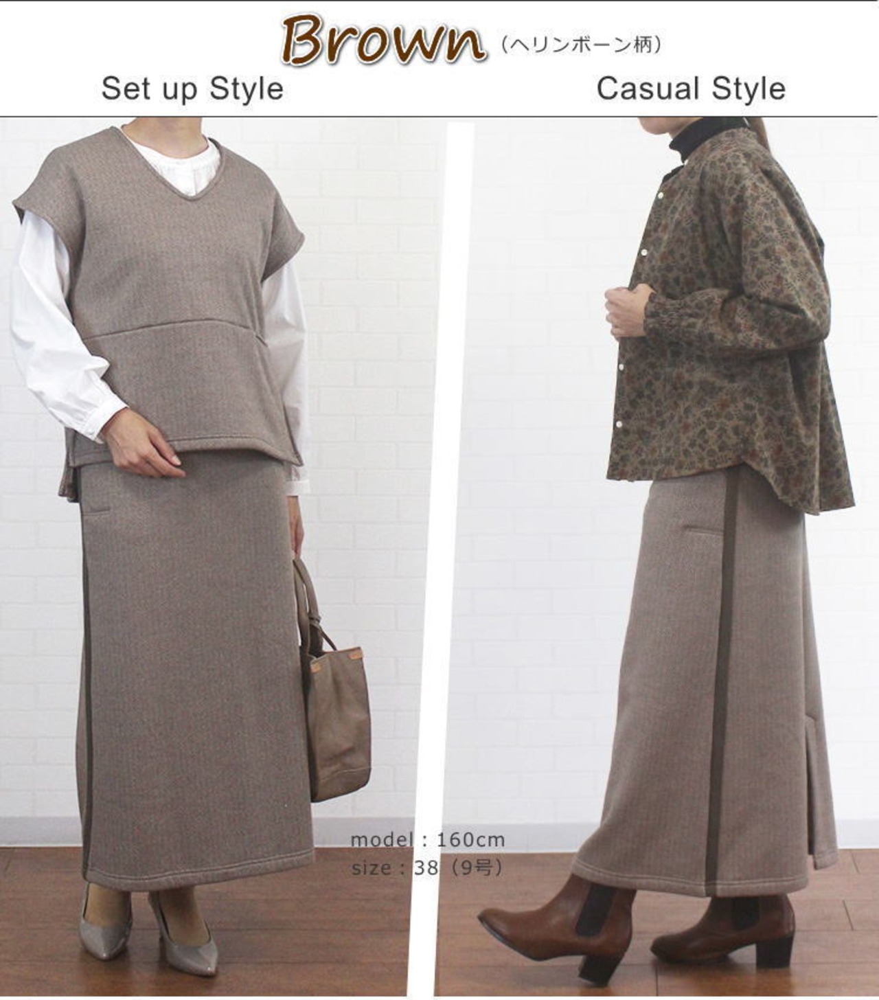 スカート タイトスカート カットソー 裏ボンバー ウール見え あったか セットアップ商品 コムアンファム Comme une Femme 40代 50代 60代