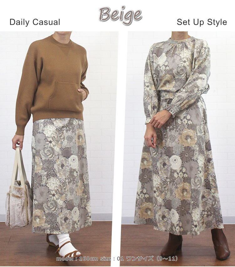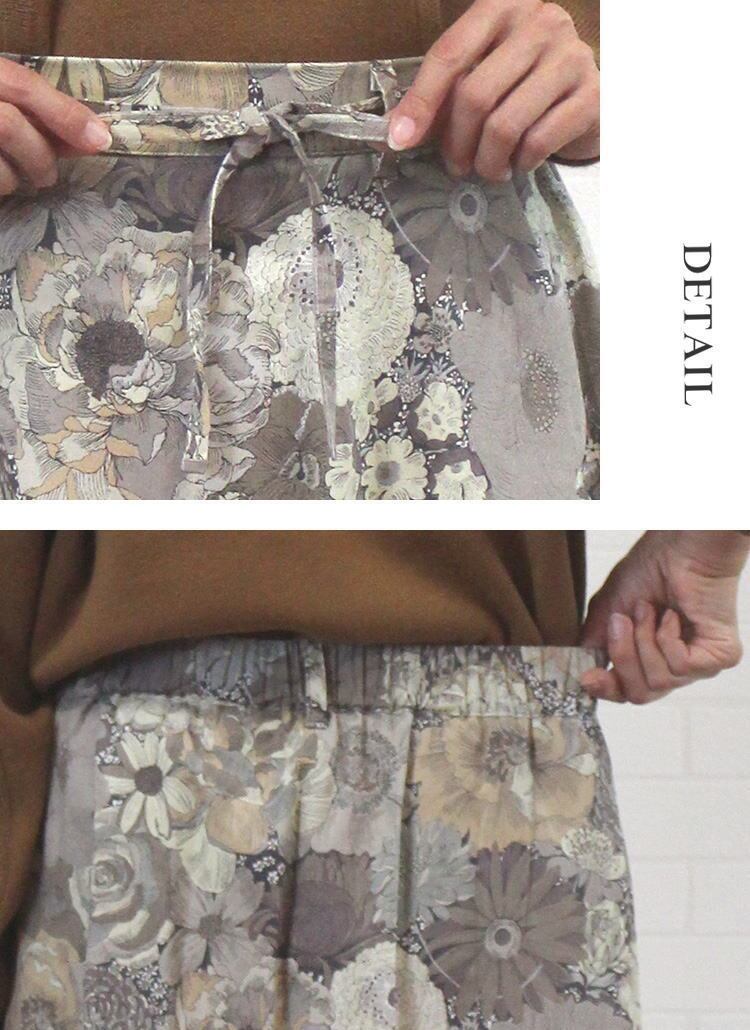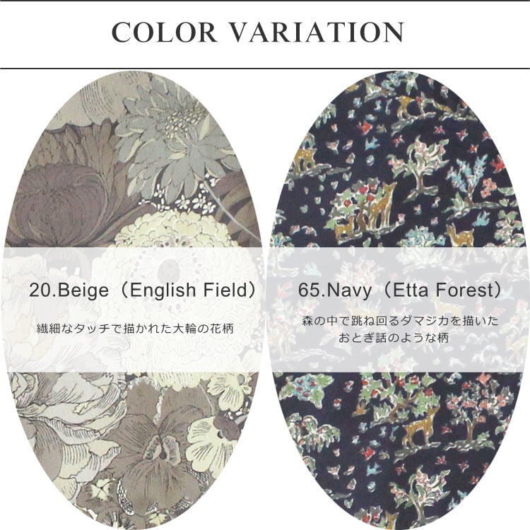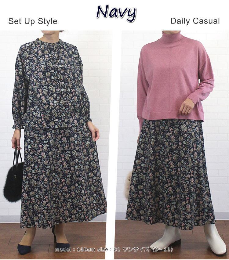 大人っぽいカラーリングと繊細なタッチで描かれた大花(English Field)と、森の中を跳ね回るダマジカを描いたおとぎ話のシーンのような対照的な2柄をセレクトしたLIBERTY PRINT細コーデュロイススカートのご紹介です。細コールの適度なハリ感がすっきりとしたAラインのシルエットを綺麗に見せます。両サイドポケットや共布リボン・後ろゴム仕様などのディテールも嬉しいデザインです。冬のコーディネートを華やかにしてくれる一枚です。同素材のブラウスとのセットアップもおすすめです♪