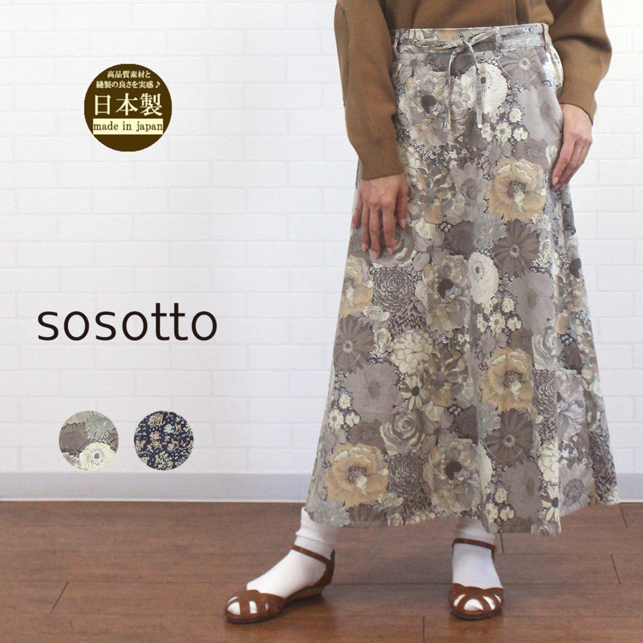 リバティプリント LIBERTY PRINT スカート コーデュロイ 細コール HOKKOH Aラインスカート 清楚 可憐 おしゃれ ソソット sosotto 40代 50代 60代