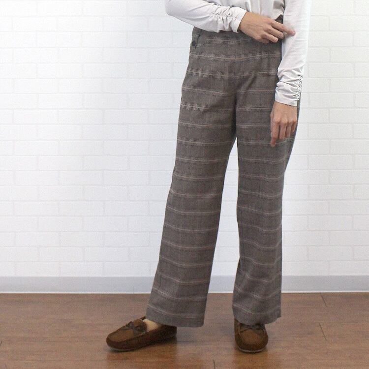 40代からの美シルエット、暖かチェックのストレートパンツ コムアンファム comme une femme ボトムス パンツ セミワイド ストレート チェック ストレッチ 暖かい 通販 店舗 レディース 秋 冬 キレイ系 シンプル コーデ スタイル 40代 50代 60代