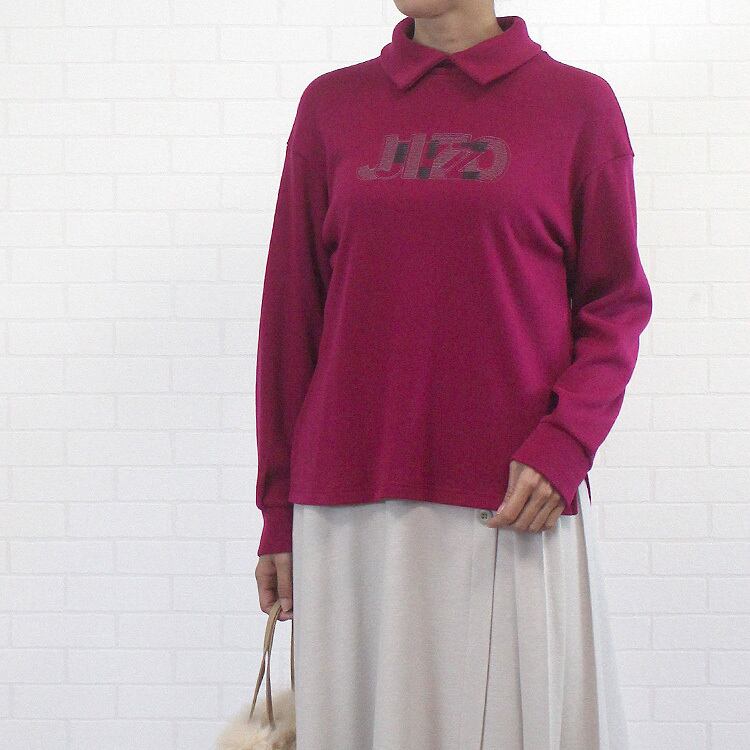 スパンコールとステッチ刺繍がオシャレなカットソープルオーバー ジッツォ JIZZO トップス シャツカラー ブランド 日本製 刺繍 秋 冬 春 レディース 女性 シンプル カジュアル ファッション 通販 店舗 手洗い可 40 9号 11号 40代 50代 60代
