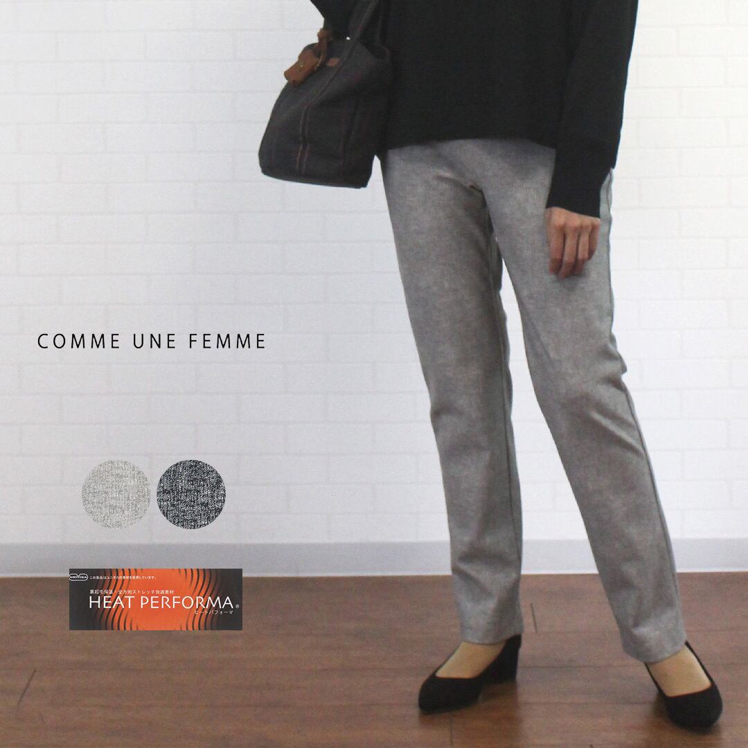 パンツ スリムパンツ スキニー 360°ストレッチ はきやすい すっきり見え 暖かい 裏起毛 プリント コムアンファム Comme une Femme 40代 50代 60代