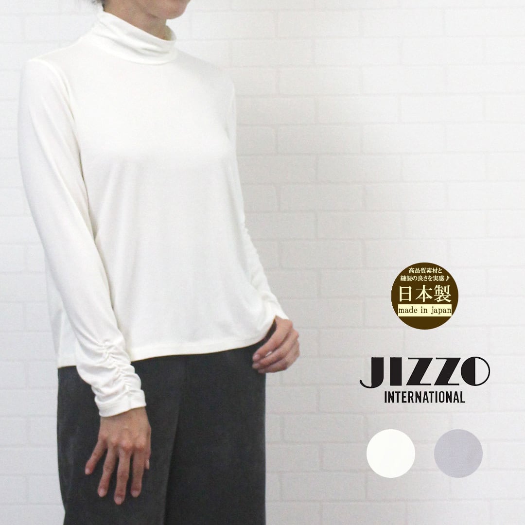 ハイネック プルオーバー 袖口シャーリング 暖かい 機能素材 やわらかい 滑らか 日本製 ジッツォ JIZZO 50代 60代 70代