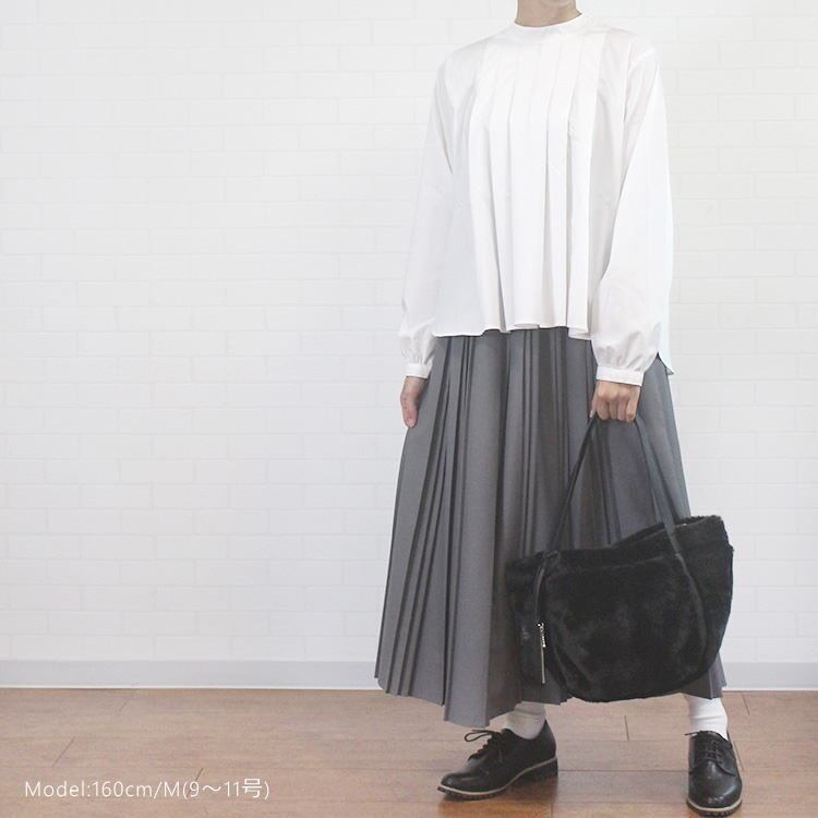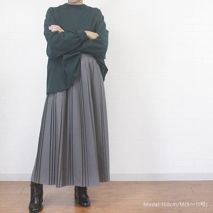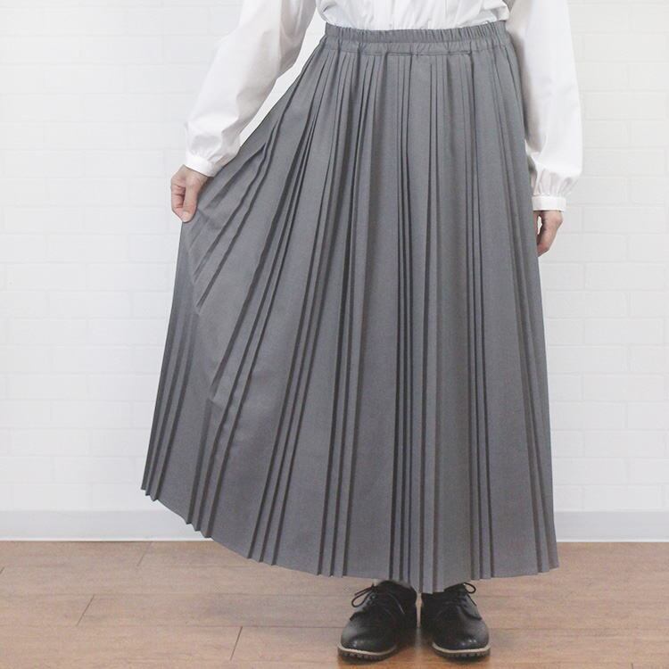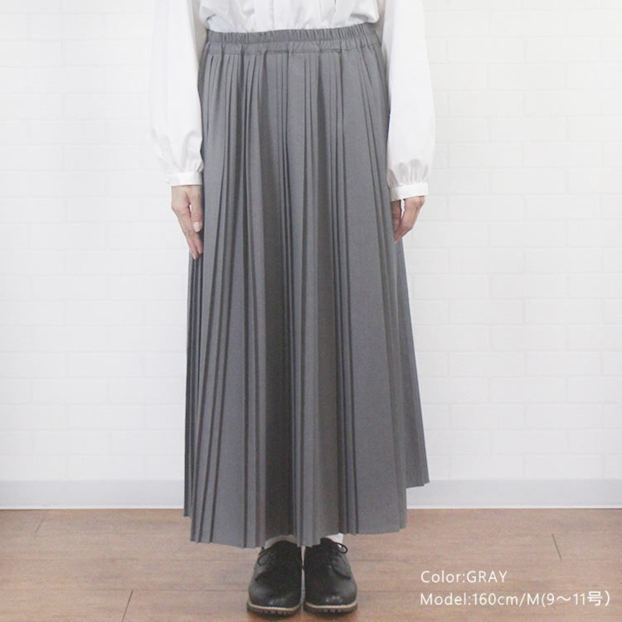 大、小、小のヒダがリピートするデザインは「親子プリーツ」とも呼ばれるプリーツスカートの種類の1つ。動きに合わせて生まれる陰影と立体感が特徴で、歩くたびにふんわりと揺れる裾が、女性らしい印象を引き立てます。ウエストはオールゴム仕様で、ストレスフリーな着心地。マットで落ち着いたポリエステル・レーヨン素材はお出掛けシーンに最適。シンプルながらも個性的なデザインスカートは、ブラウスやニットなど、どんなトップスとも合わせやすく重宝する1枚です。