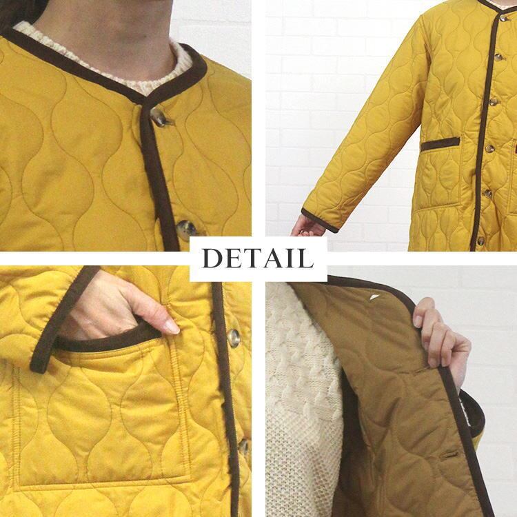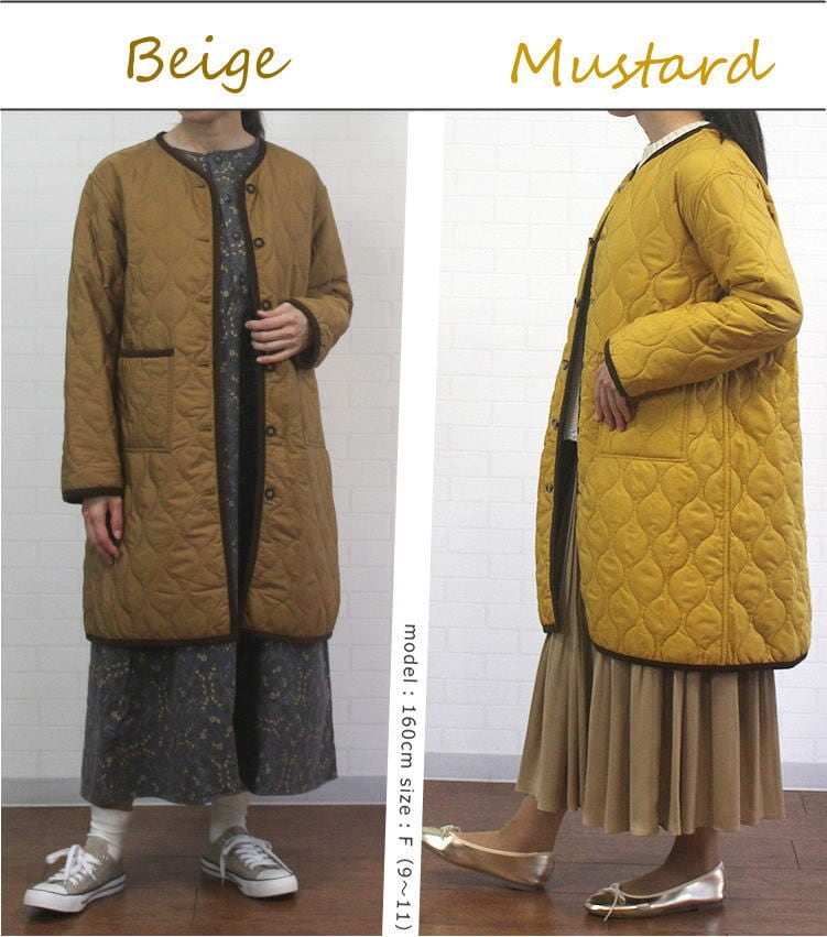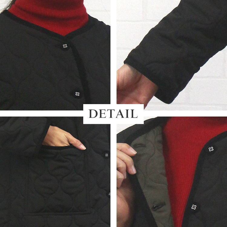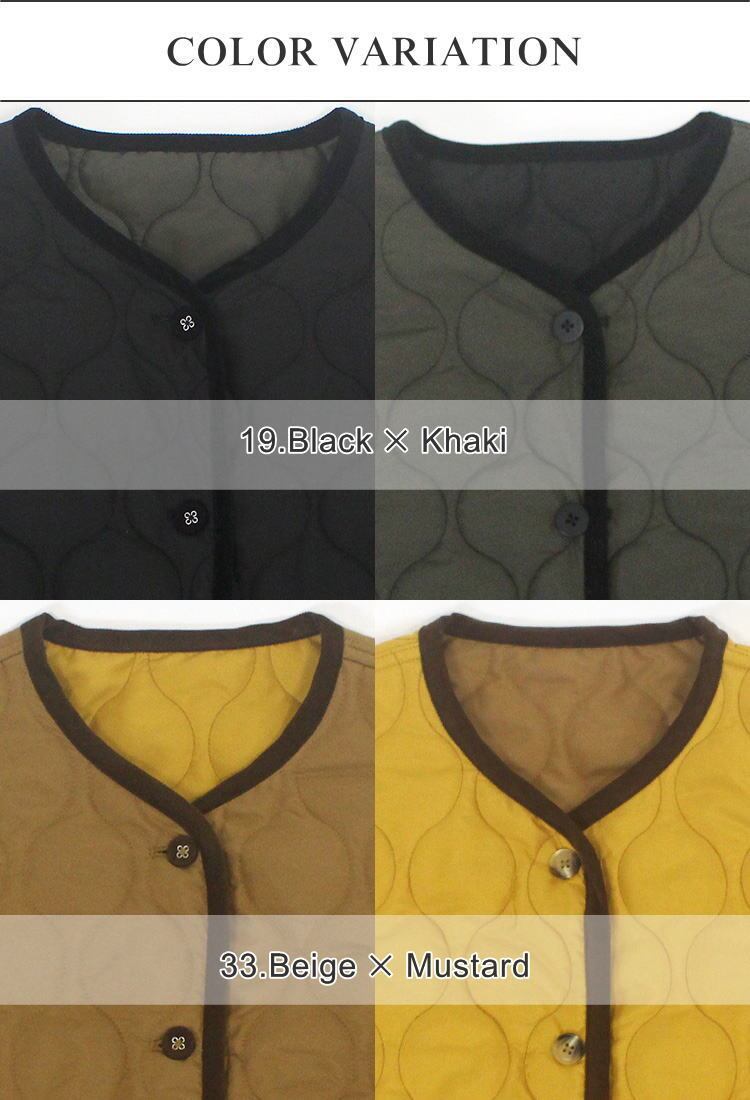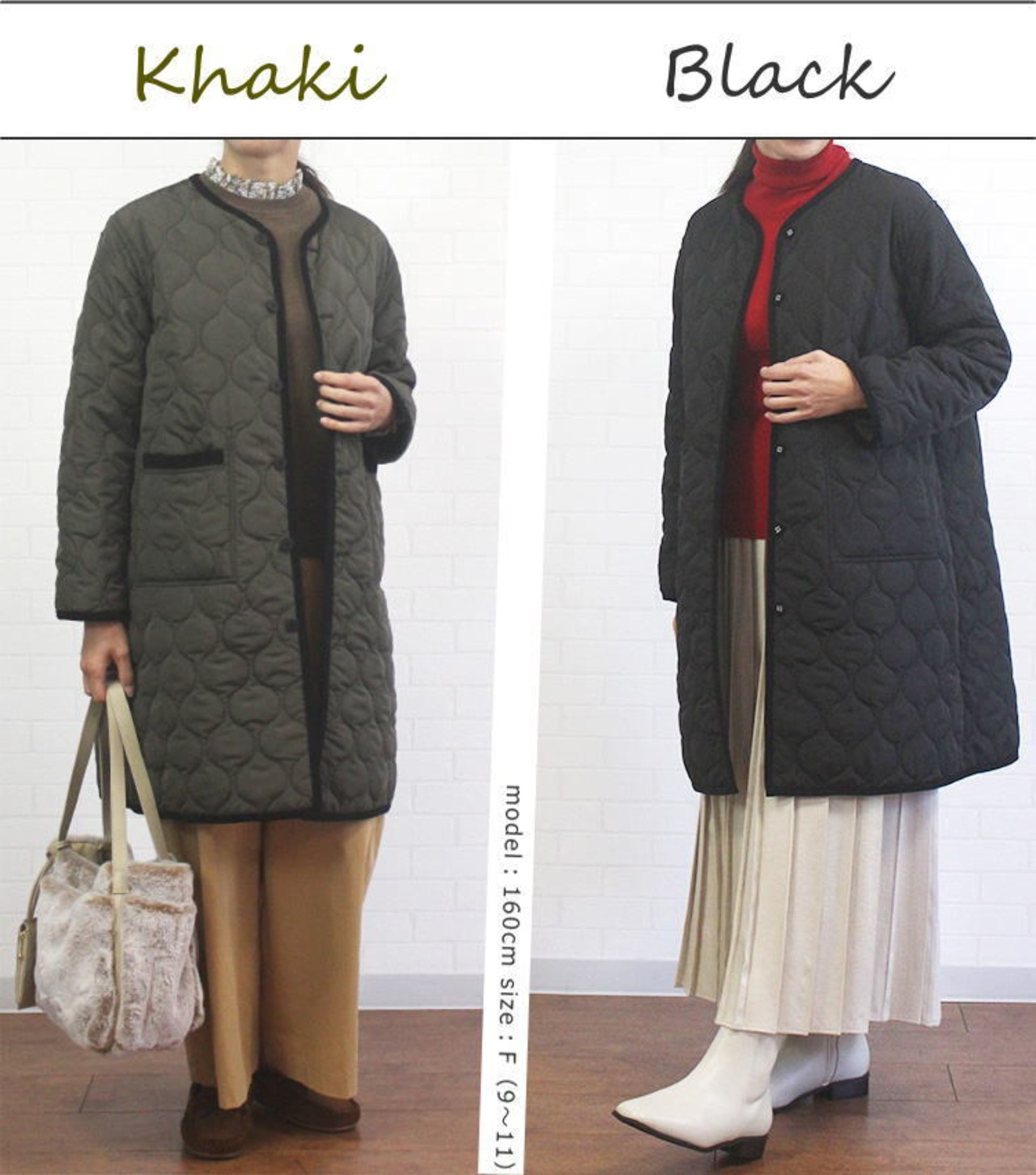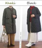 リバーシブルで着用可能なキルティングコートが新登場!着こなしやすいブラック×カーキ、ベージュ×マスタードのラインナップ。釦やポケットも両面チェンジして1着で2役!その日の気分やコーデによって好きなカラーを楽しんで。表と裏で表情がガラッと変わるので、旅行にもおススメです。袖口を折り返してカラーを見せる着こなしもオシャレです♪
