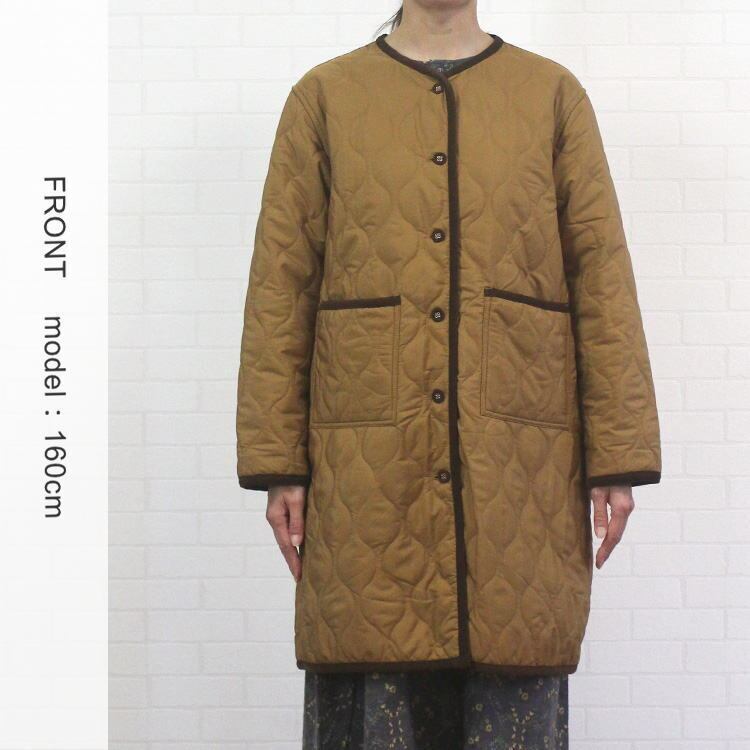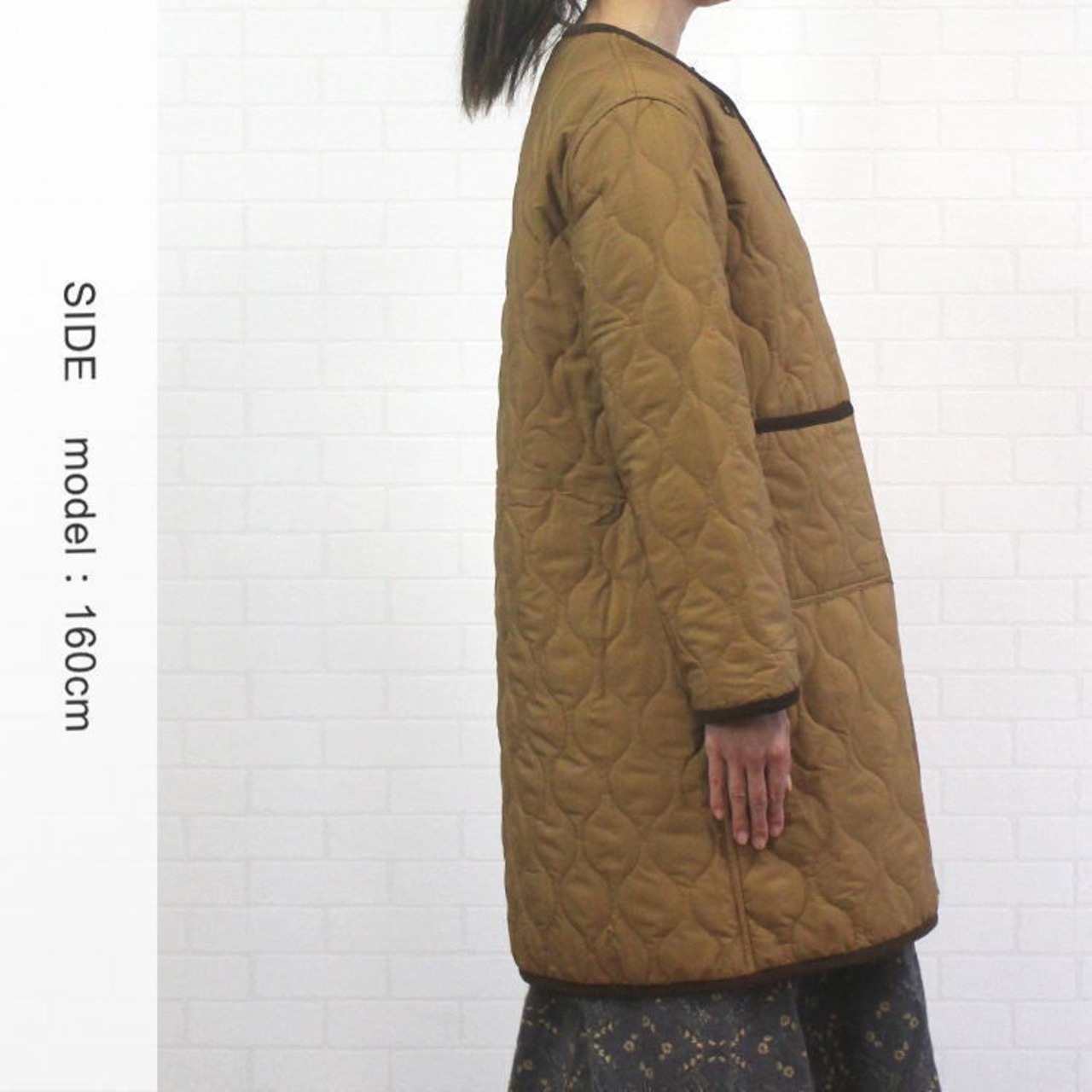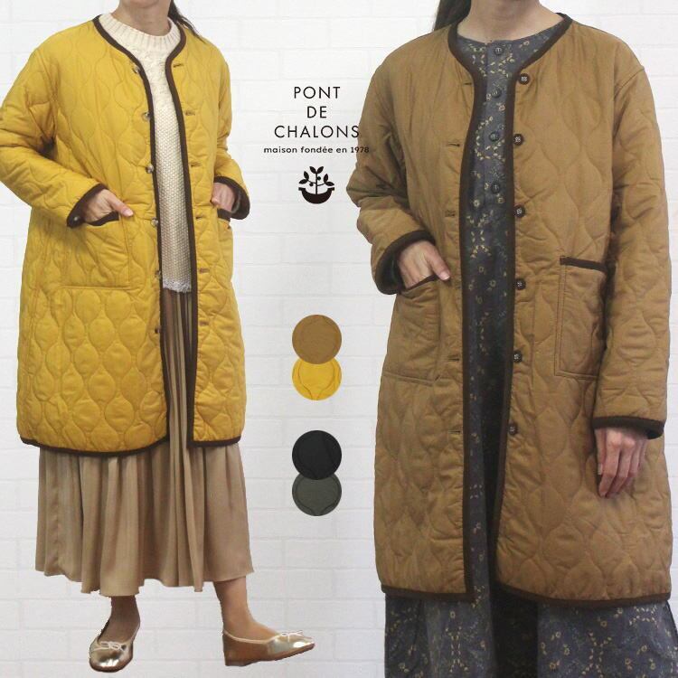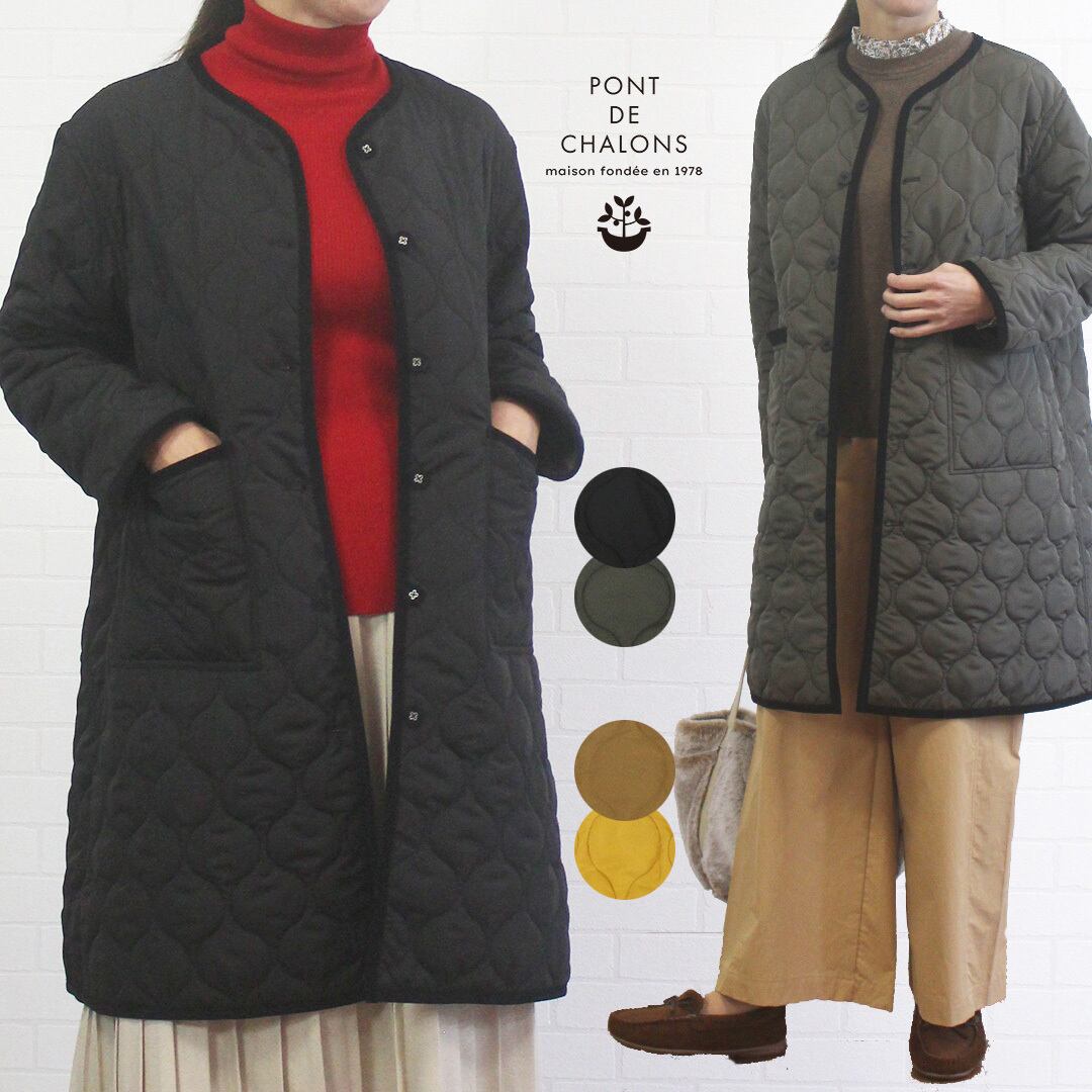 コート 洗えるキルティング リバーシブル 2Way ノーカラー 長袖 ひょうたん柄キルト ポンデシャロン PONT DE CHALONS 40代 50代 60代
