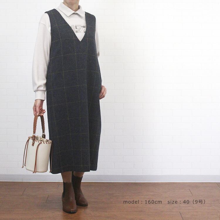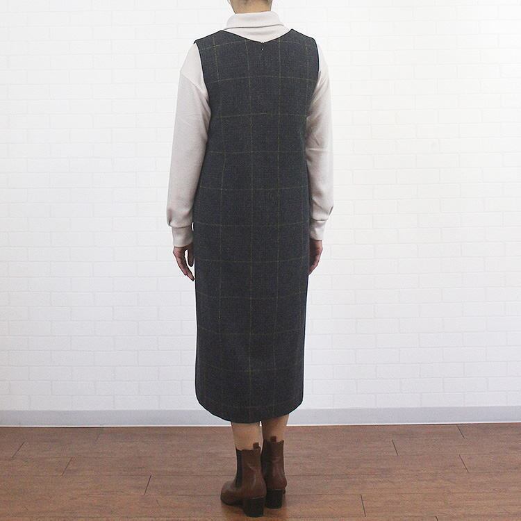 ジャンパースカート アルパカ混 上質 深Vネック キレイ見え グレンチェック柄 シンプル カジュアル お仕事 大人 ジッツォ JIZZO 50代 60代 70代