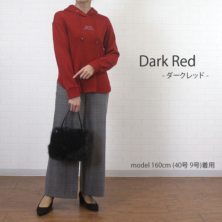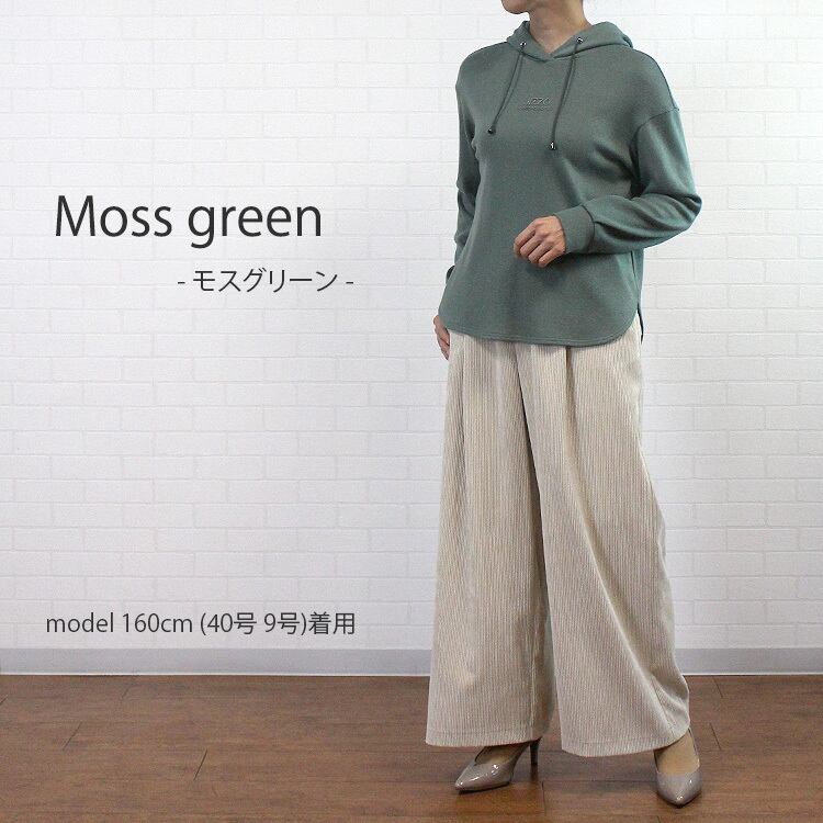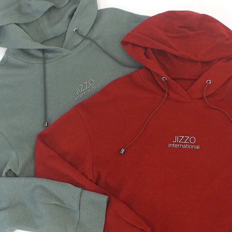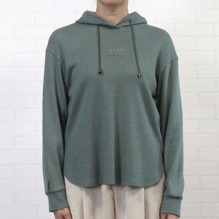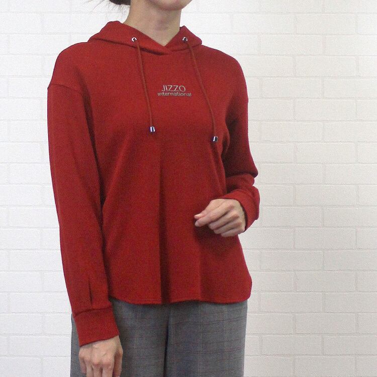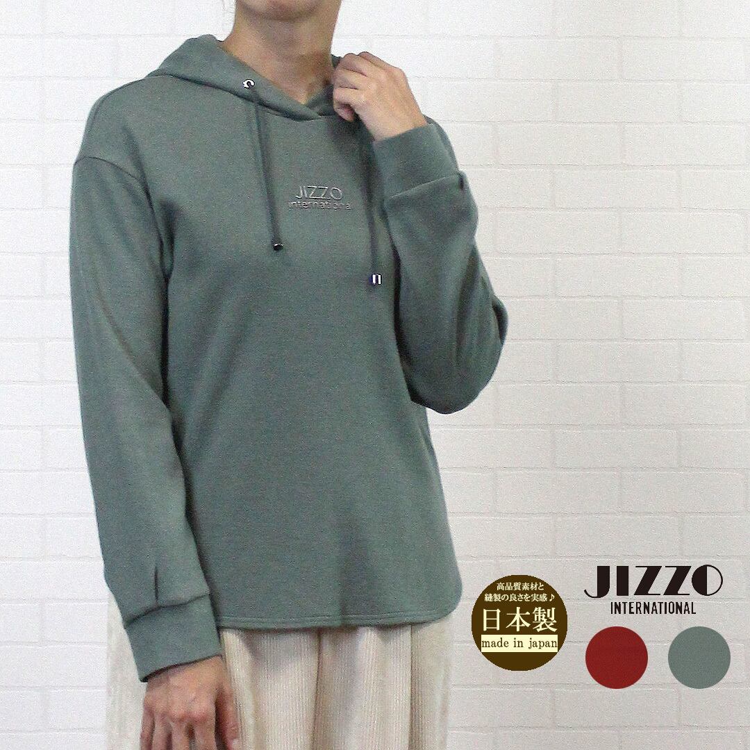胸元ロゴプリントがオシャレな大人のパーカー ジッツォ JIZZO JKGD41 プルオーバー 長袖 日本製 秋 冬 春 レディース 女性 シンプル カジュアル オバ見え 防止 通販 店舗 手洗い可 40代 50代 60代