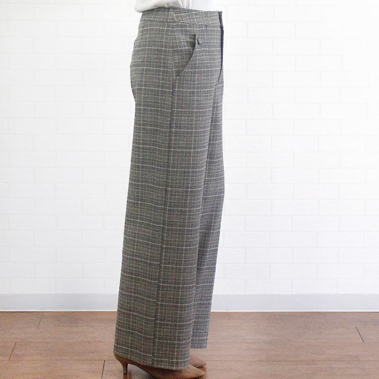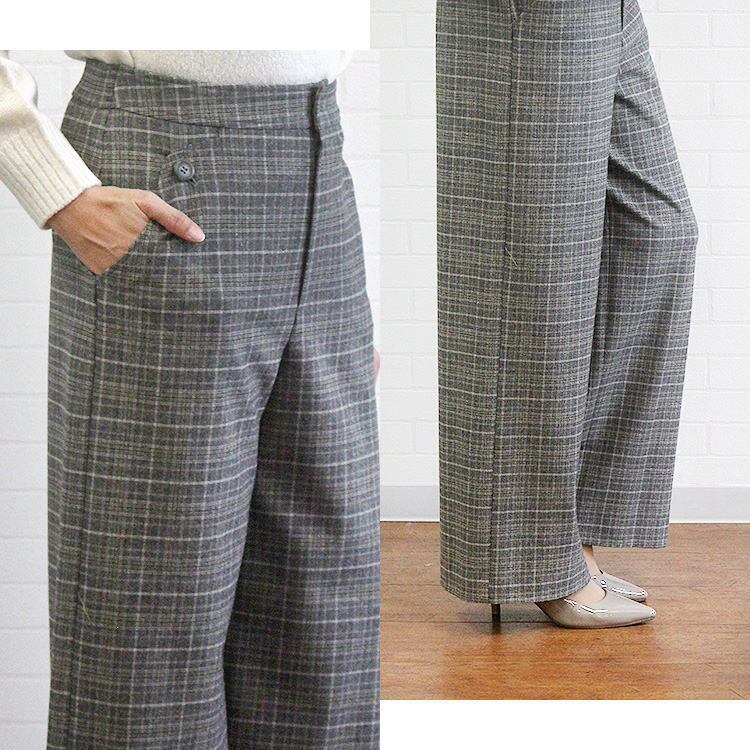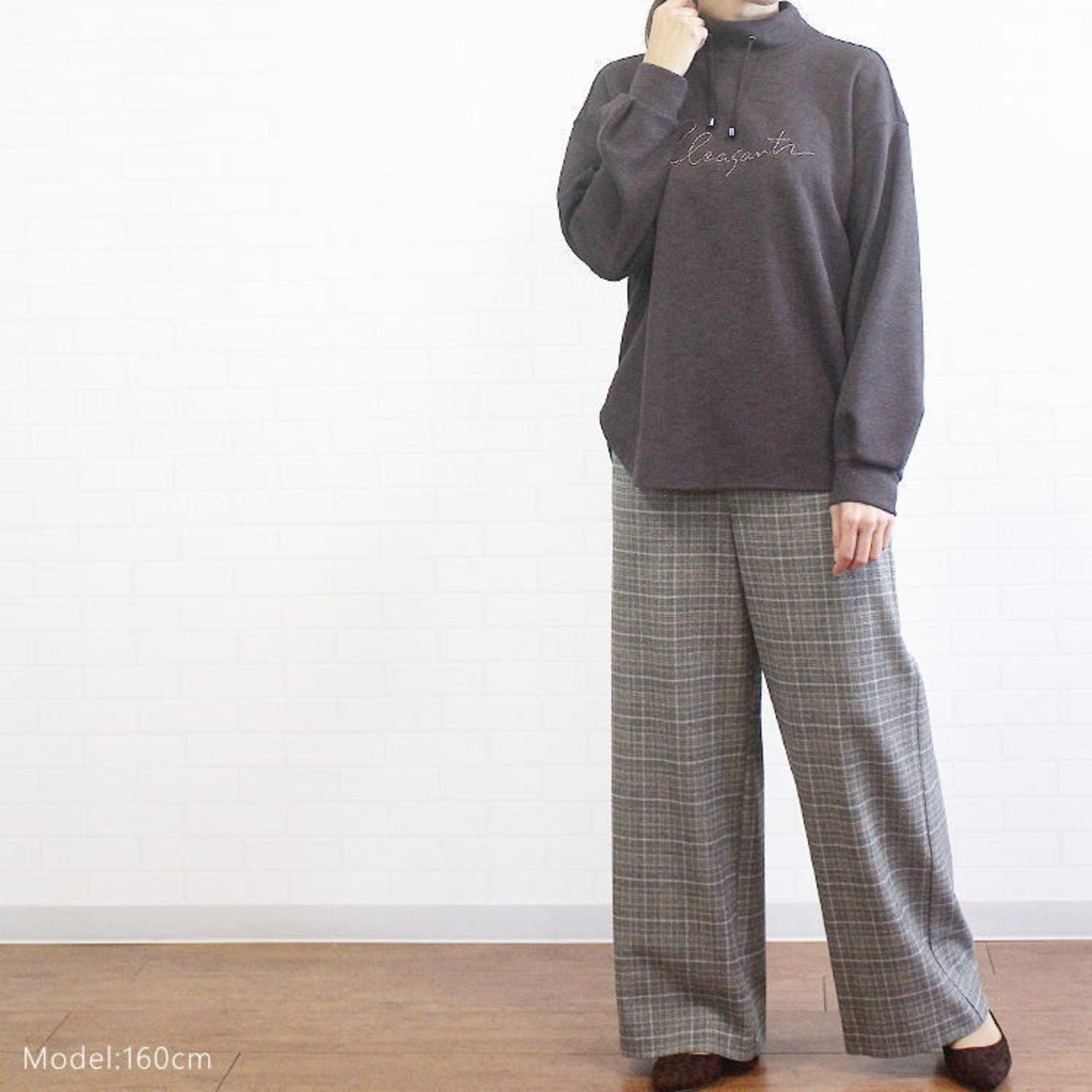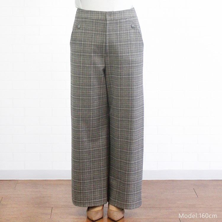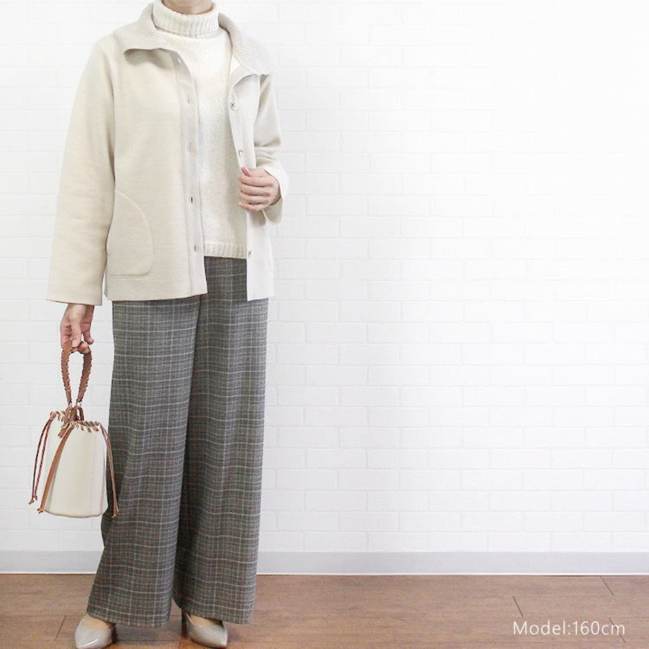 あたたかみのある起毛素材で秋冬にぴったりなチェック柄パンツがJIZZO(ジッツォ)から届きました。ラメ入りのチェック柄で落ち着きがありながらもさり気なく華やかさをプラス。ストレッチの効いたT/R素材で穿きやすく、足のラインを拾わないセミワイドシルエットなので体型カバーも◎。カジュアルになりすぎず、品よく穿いていただけるので、大人の秋冬コーデのポイントになる1本です。