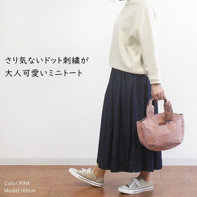 ドット刺繍が可愛いトートバッグ toleur トーラ 13009 コットン/ナイロン 軽量 ドット刺繍 ミニトートBAG