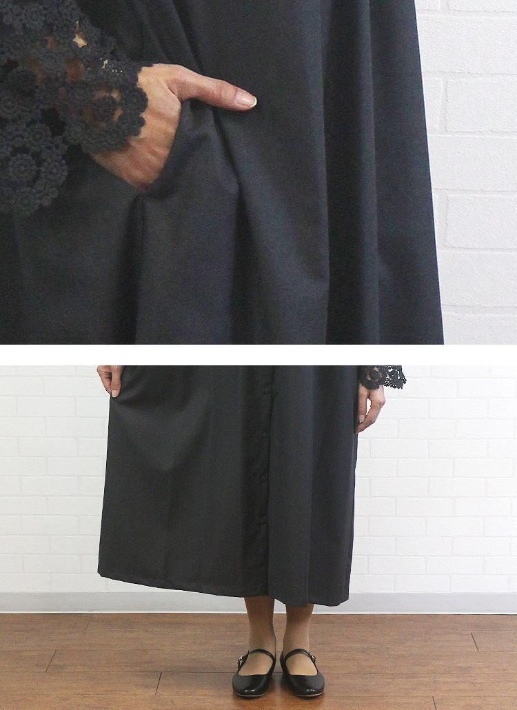 ワンピース オケージョン フォーマル フェミニン 袖レース シック 華やか ゆったり ポンデシャロン PONT DE CHALON 40代 50代 60代