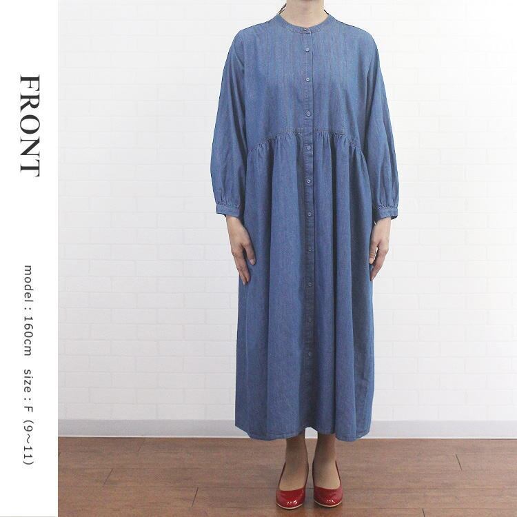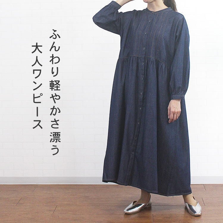 ワンピース デニム ライトオンスデニム 軽い 前開き 羽織 長袖 清楚 大人 シンプル ソソット sosotto 40代 50代 60代