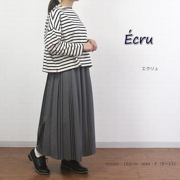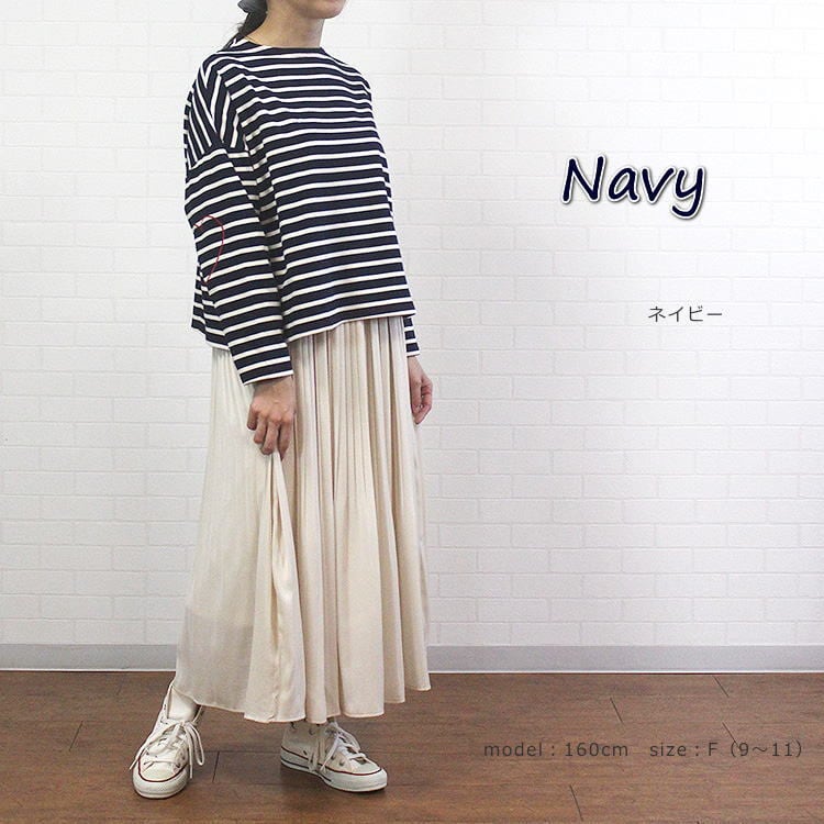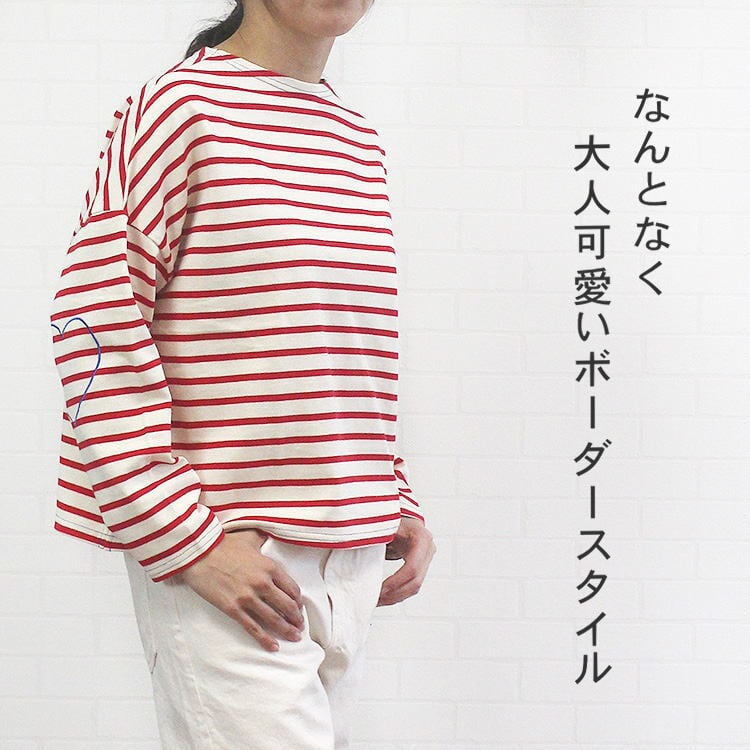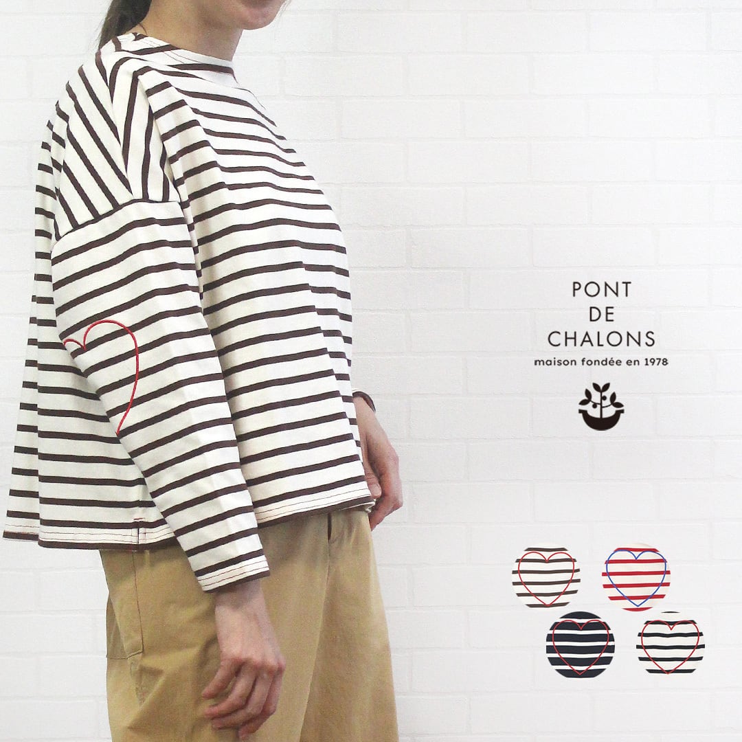 Tシャツ 長袖 カットソー ボーダー ハート刺繡 パッチ風 透けない シンプル 可愛い 洗濯可 ポンデシャロン PONT DE CHALONS 40代 50代 60代