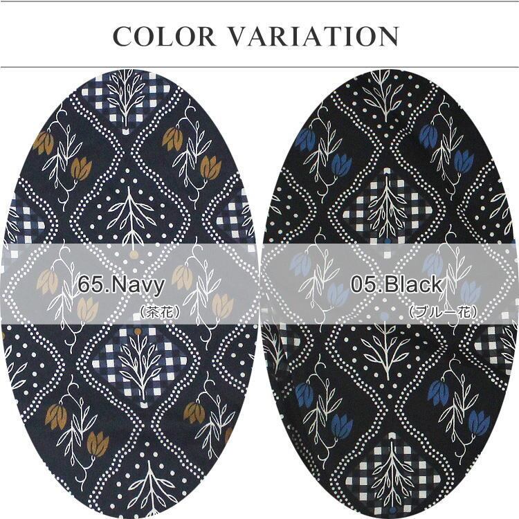 毎シーズン展開しているORIGINAL PRINT柄、今シーズンの柄は点描で描いた格子の中に花・木・ギンガム・ドットといろんな柄をミックスした落ち着いた2配色の柄に、花と木の実の爽やかさをプラスしました。さらりとした肌触りの良いコットンローンにプリントしたオリジナルファブリックで毎日のコーディネートが華やかに昇華します♪