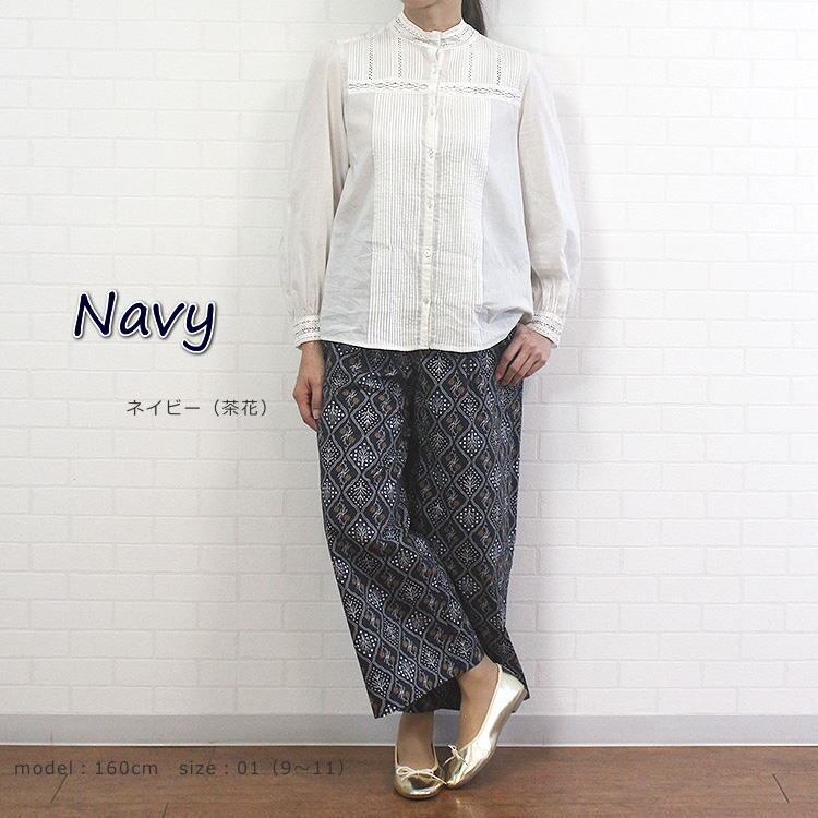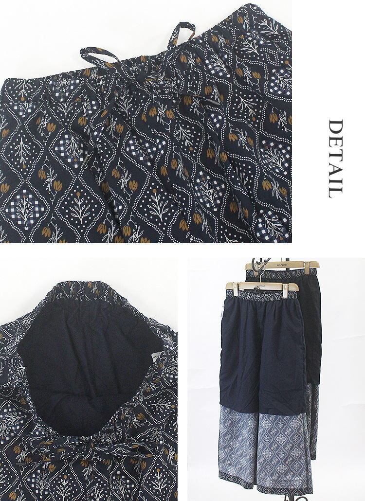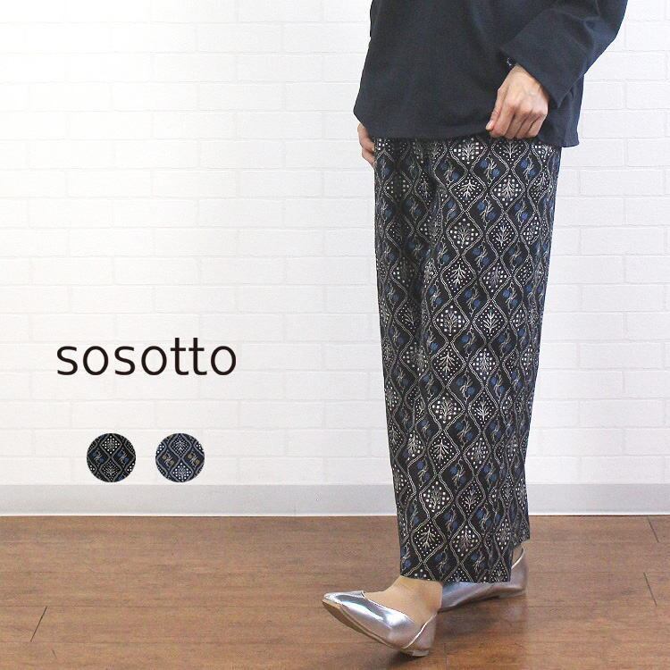 パンツ ワイドパンツ イージーパンツ 格子 花柄 裏地付き 綿100% 洗濯可 キレイ おしゃれ ソソット sosotto 40代 50代 60代