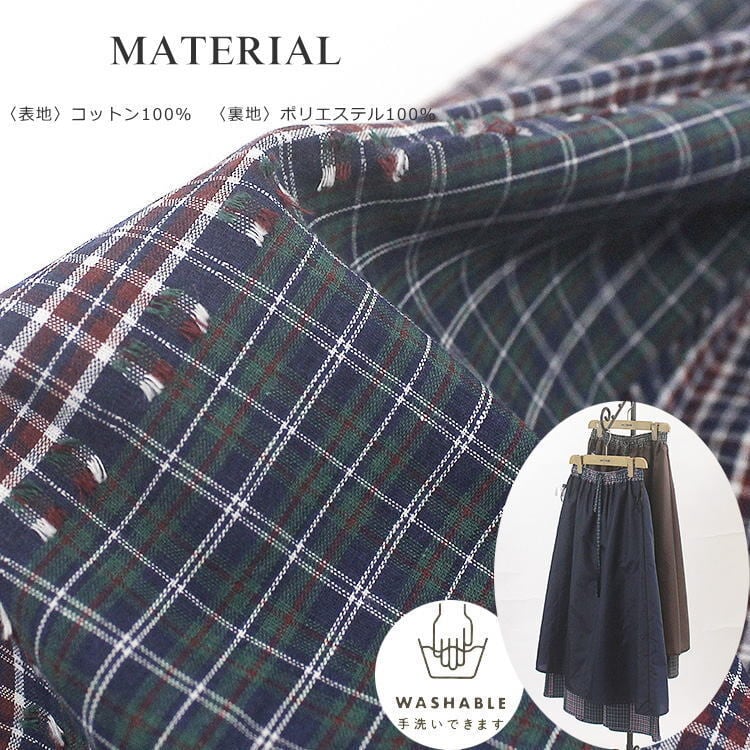 イメージの違う2種類のチェック柄をパッチワークしたようなおしゃれなスカートがsosottoから届きました。他のチェック柄とは違ったアンカットの凹凸がリボンのように織り込まれた生地は、綿なのに上質で上品見えが叶います。さらりとしたコットンの風合いと雰囲気のある素材感で大人なスカートスタイルをお楽しみください♪
