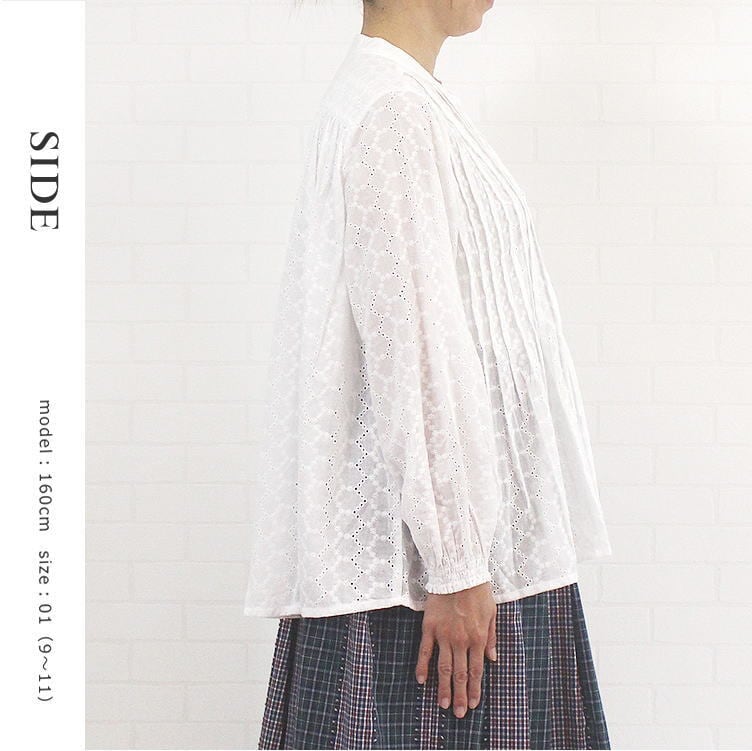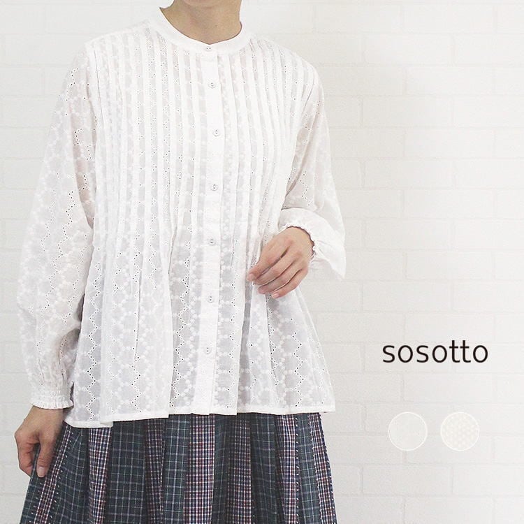ブラウス 刺繍レース ピンタック チュニック丈 前開き 繊細 透け感 おしゃれ 清楚 洗濯可 ソソット sosotto 40代 50代 60代