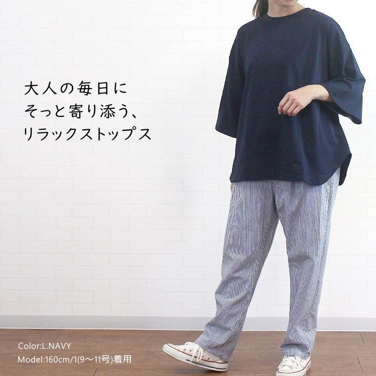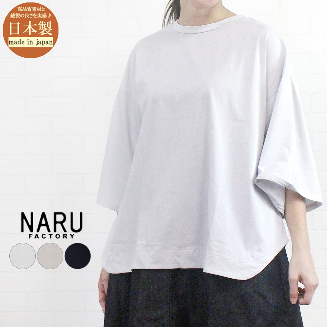 NARU(ナル)の春夏の定番素材、「サイロプレミアム」を使用した5分袖Tシャツの紹介です。コットンでありながら、つるんと滑らかな肌あたりが心地よく、少しハリのある質感は肌にまとわりつきにくく、汗ばむ季節でも快適な着心地。ゆとりのある身幅と、肘が隠れる袖丈、身体のラインを拾いにくいバランスで気になる部分をさり気なくカバーしてくれます。シンプルなのでパンツともスカートとも相性良く、合わせるボトムスによって雰囲気を変えられるのも魅力です♪