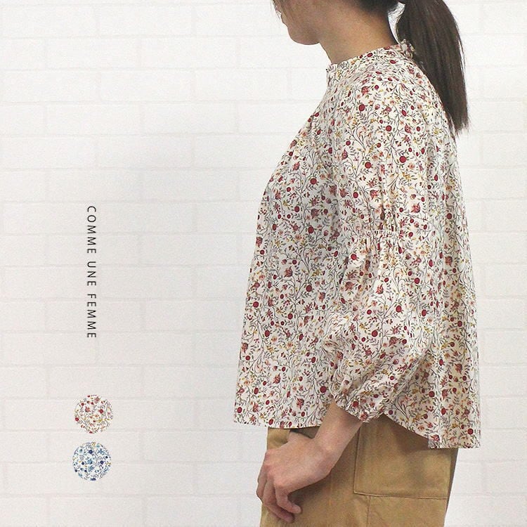 ブラウス 花柄 木の実柄 プルオーバー タック&ギャザー ふんわり おしゃれ 可愛い コムアンファム Comme une Femme 40代 50代 60代