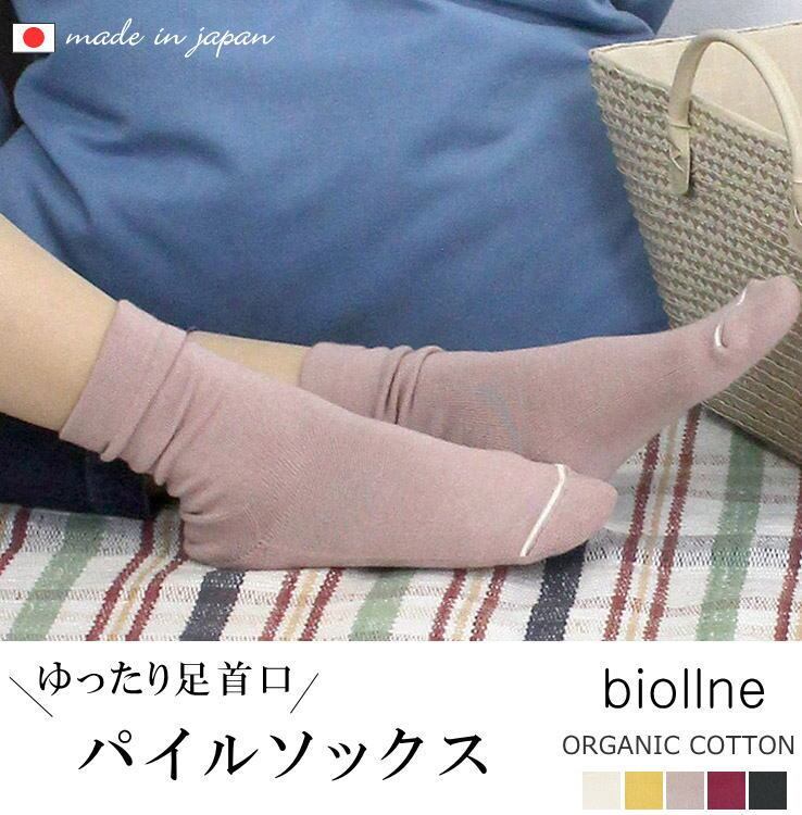 ゆったりとした履き口と足底パイルが心地良いソックス ビオルネ biollne ソックス 靴下 足底パイル編み オーガニックコットン 綿 肌に優しい ゆったり 柔らかい レディース 女性 日本製 冷え取り プレゼント 無地 厚手