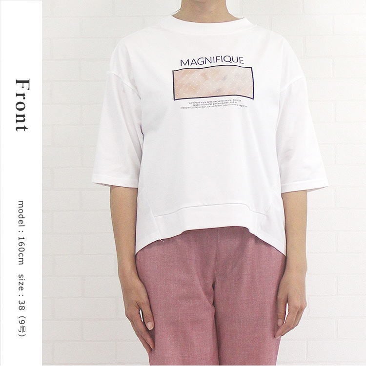 5分袖 Tシャツ カットソー プルオーバー クルーネック フール加工 コクーンシルエット きれいめ コムアンファム Comme une Femme 40代 50代 60代