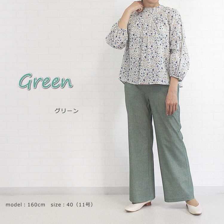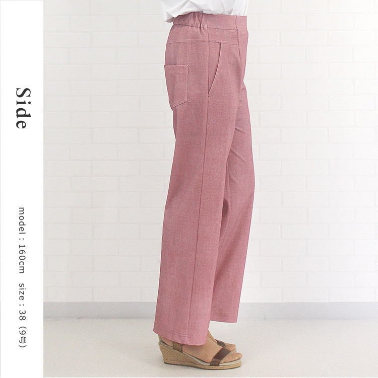 516337 ボトムス パンツ セミワイド COOL EFFECT 360°ストレッチ ウエストゴム キレイ系 オンラインショップ 店舗 レディース 女性 春 夏 秋 無地 デニム風 シンプル 洗濯可 38 9号 40 11号 40代 50代 60代