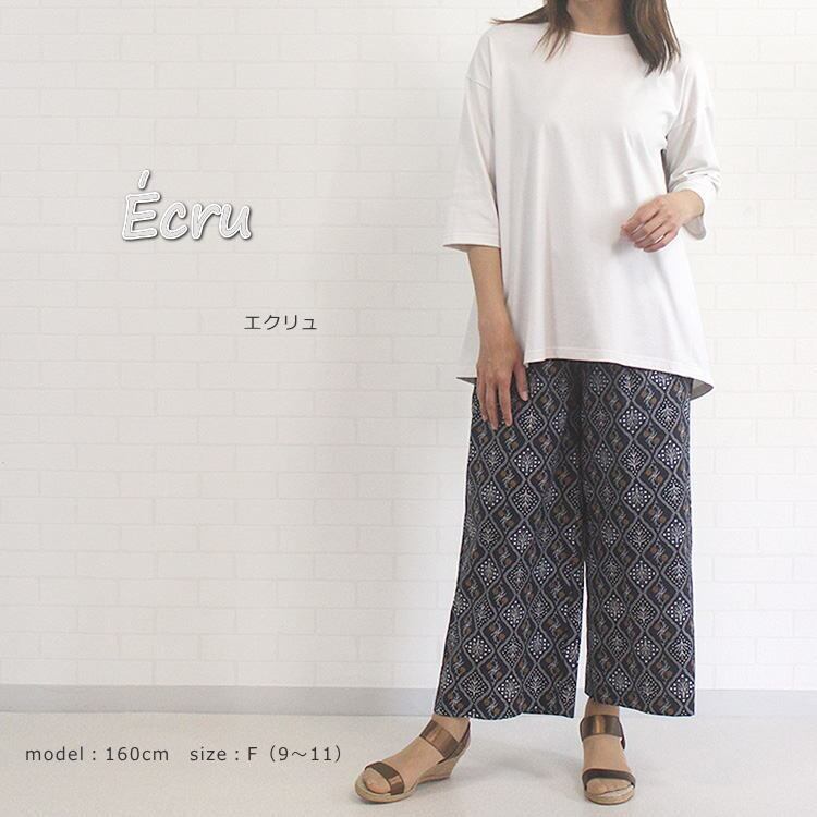 21267450 トップス ロングプルオーバー カットソー 6分袖 高機能性素材 綿100% 通販 店舗 レディース 女性 カジュアル シンプル 可愛い 洗濯可 春 夏 秋 F フリー 9号 11号 40代 50代 60代